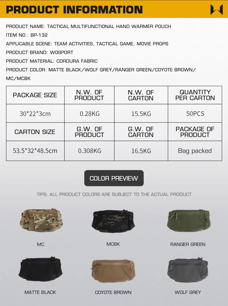 Riñonera táctica multifuncional para manos, bolsa calentadora de manos, riñonera Stowable para invierno, Airsoft, caza y Camping