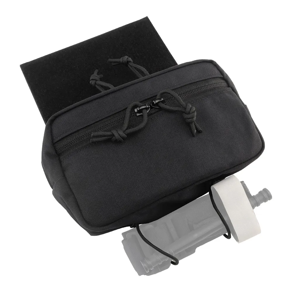 La bolsa desplegable es un práctico accesorio portador de placas que amplía las opciones de almacenamiento de su equipo táctico. Con sus compartimentos con cremallera y su versátil sistema de fijación, ofrece una solución conveniente para transportar y organizar sus elementos esenciales diarios de una manera compacta y segura.