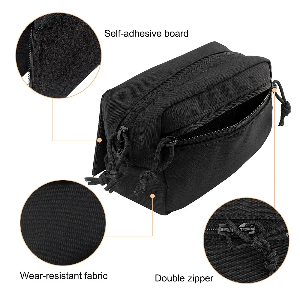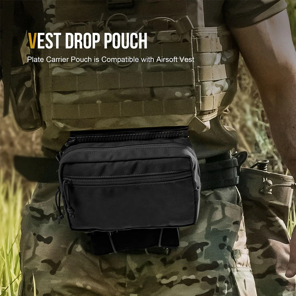 La bolsa colgante táctica es un accesorio portador de placa diseñado para uso táctico y al aire libre. Está hecho de material de nailon 500D, que presenta una excelente resistencia y resistencia a la suciedad, el agua y la abrasión.