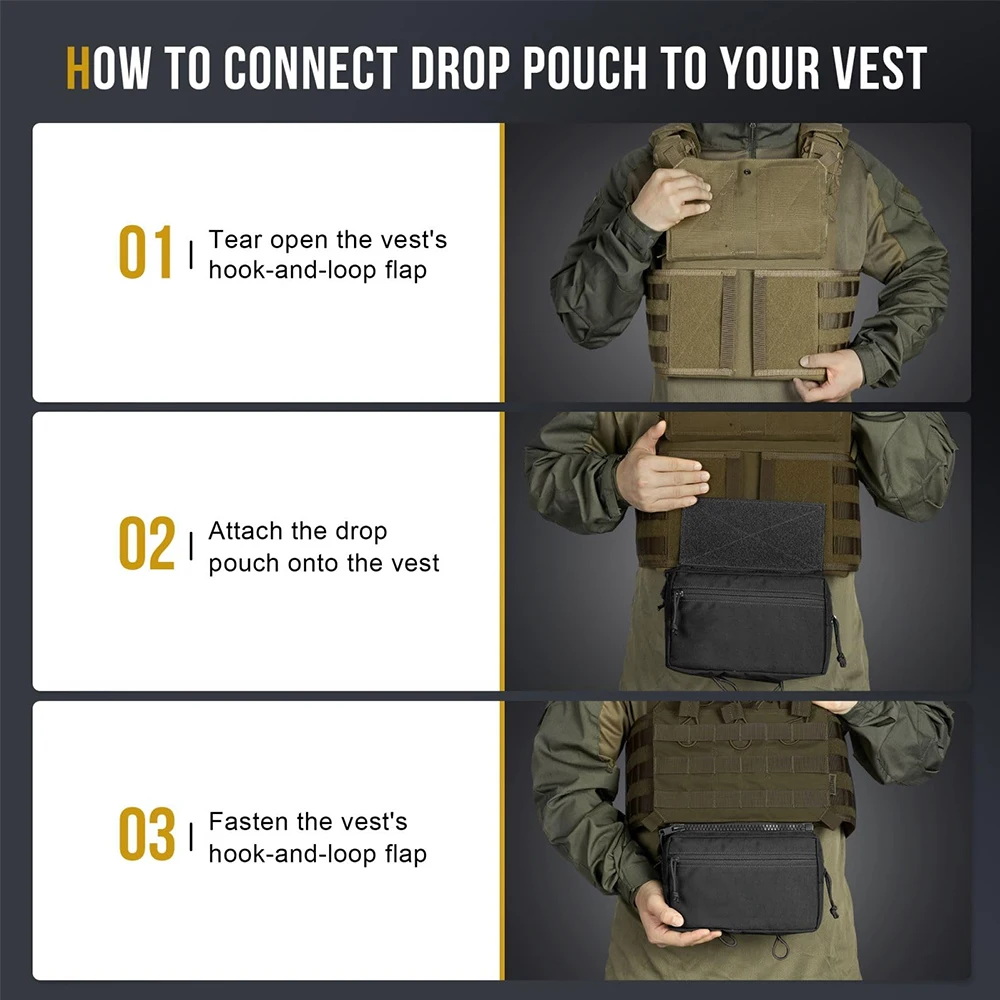 La bolsa portadora de la placa es compatible con el chaleco airsoft quitando el panel de velcro de 20*10cm de su chaleco y uniendo la bolsa colgante debajo del panel.