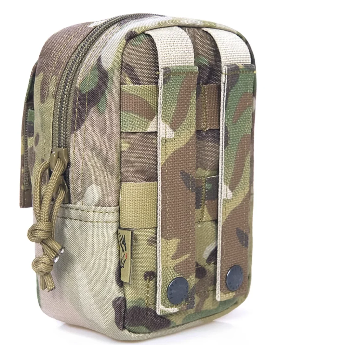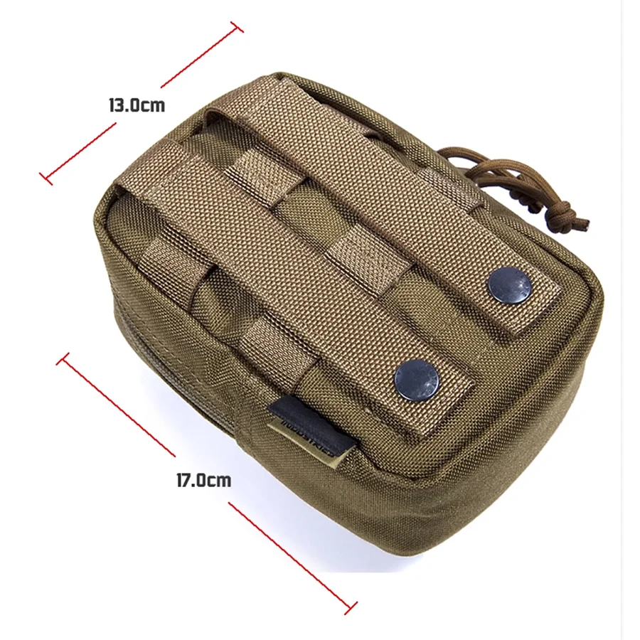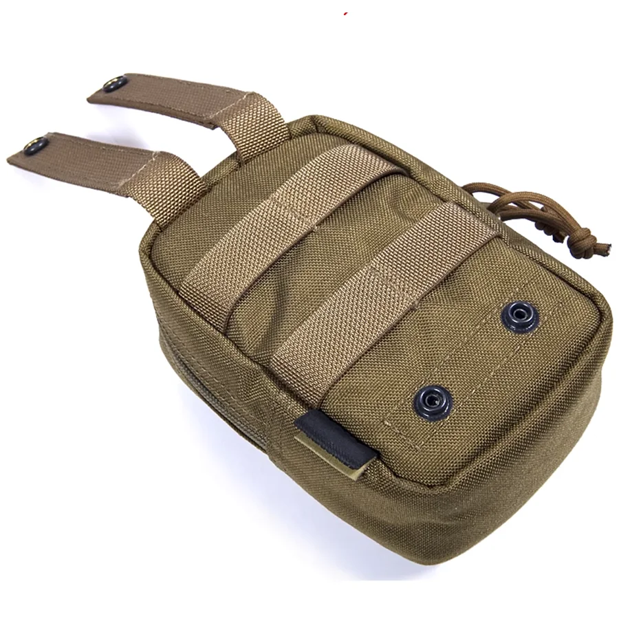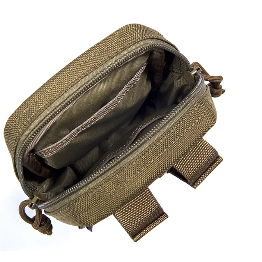 Se puede colgar en la bolsa o chaleco del sistema Molle, o en el cinturón (la bolsa no incluye cinturón, teléfono, etc.).