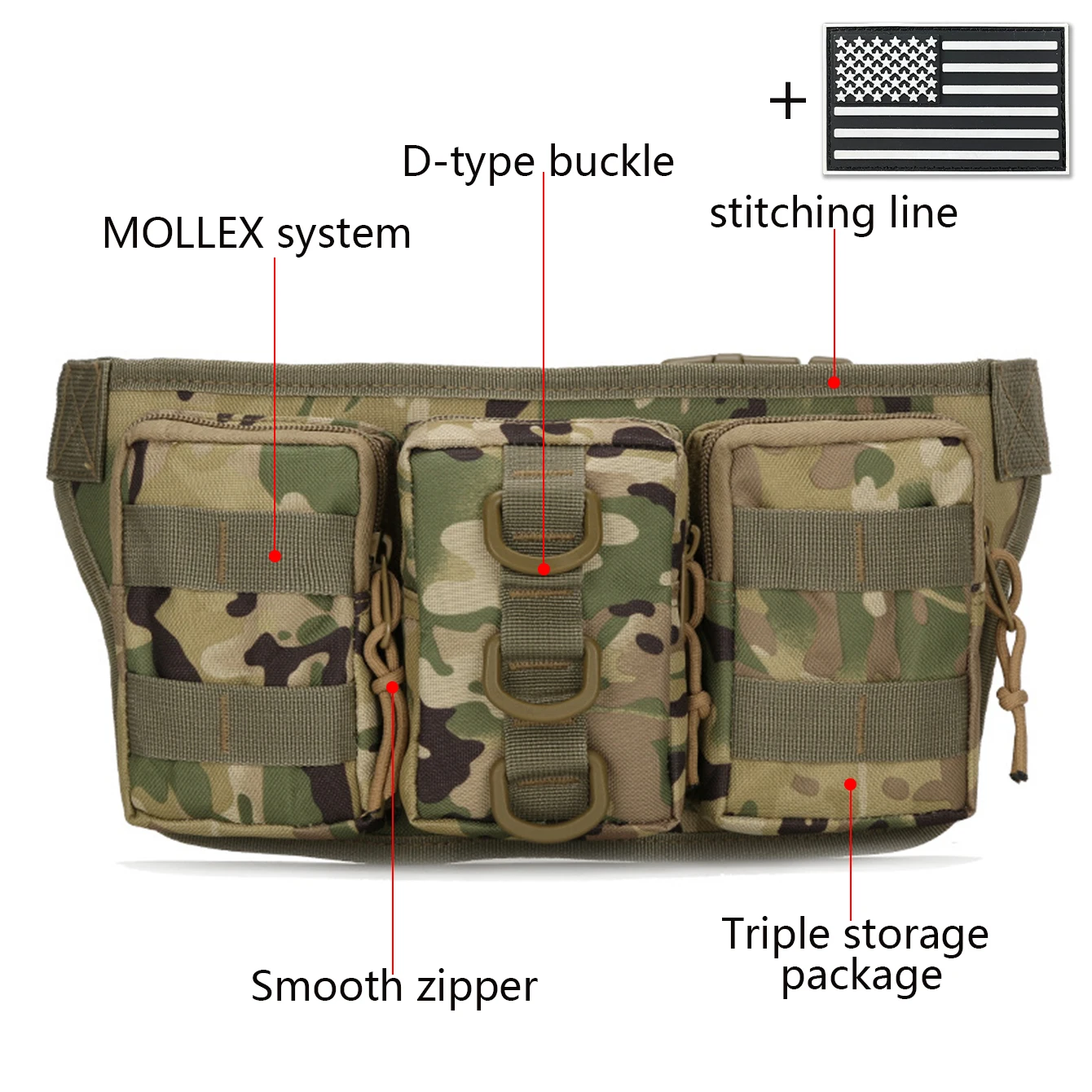 Riñonera triple con bolsillo con cremallera en la espalda, bolsa de transporte diaria para exteriores duradera y resistente al desgaste