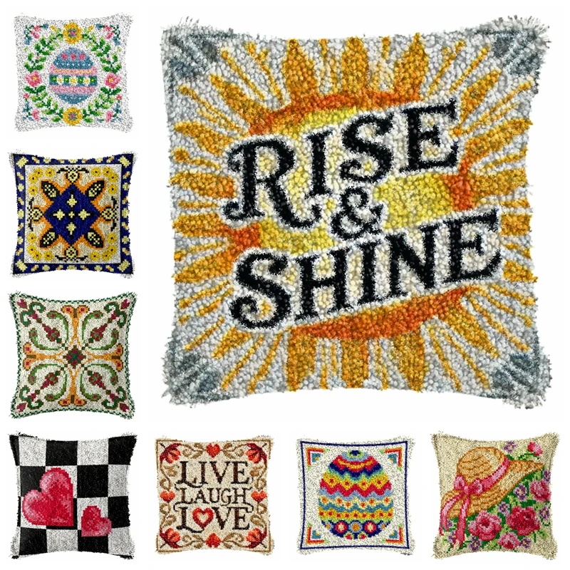 RISE & SHINE-Kit de gancho de pestillo para alfombras, juego de bordado de alfombra clásica, Kit de bordado de amor, almohada de punto de cruz, paquete de botones Smyrna DIY