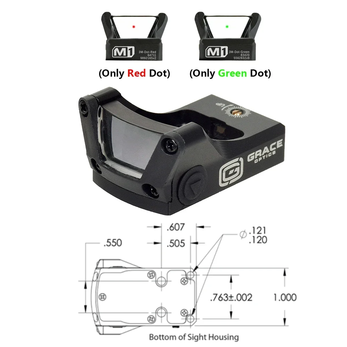GRACE M1 Vista abierta de puntos verdes o rojos 3MOA con óptica Airsoft táctica de marcado Original completo con riel de 20 mm y soporte universal