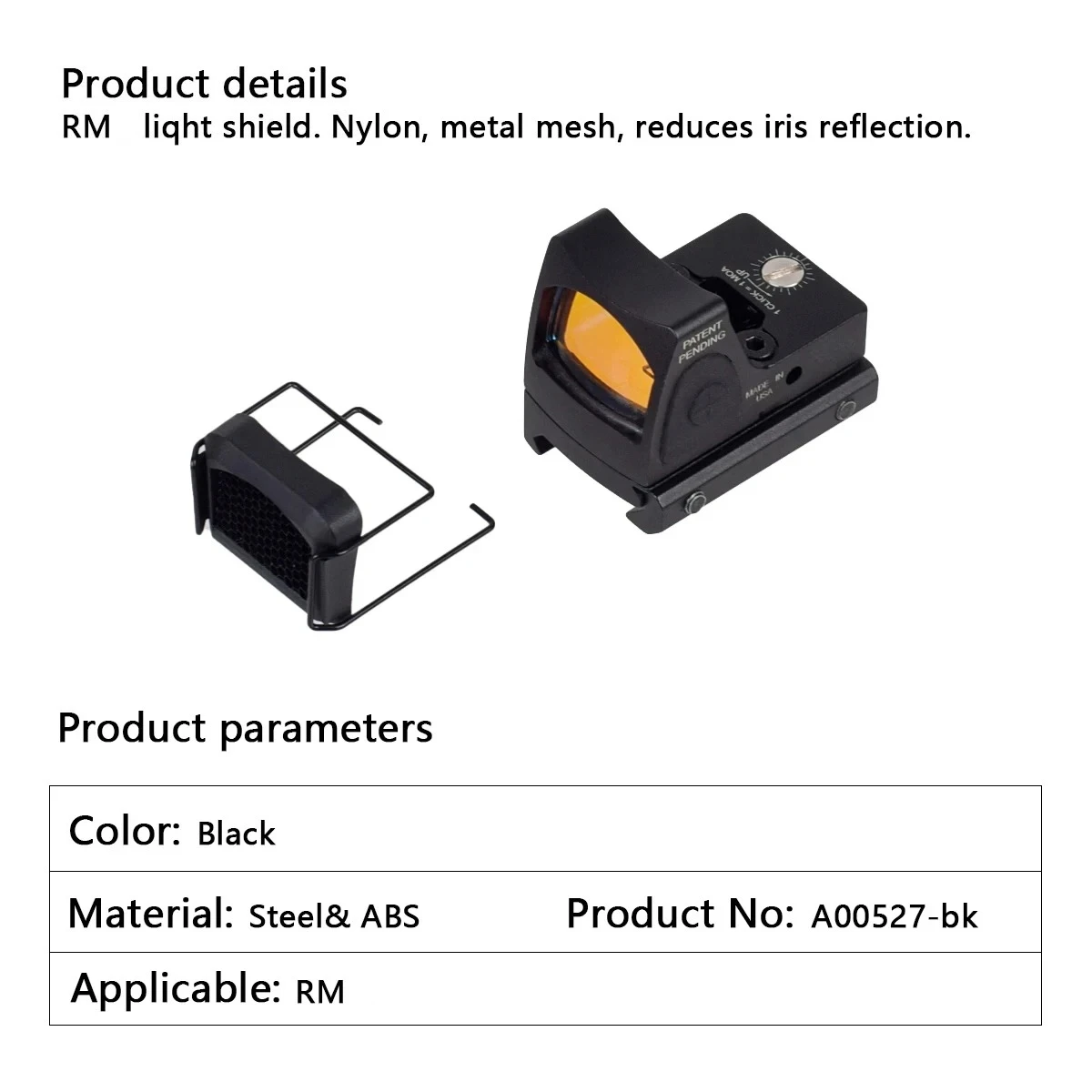 Parámetros del productoColor negroMaterial: acero y ABSAplicable: RMTamaño