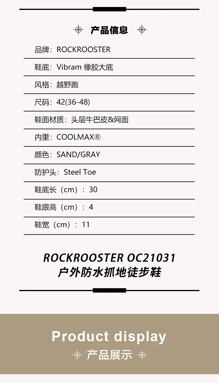 Comprar ROCKROOSTER-Botas de senderismo impermeables para hombre, zapatos de caza, botines tácticos de combate en el desierto, zapatillas informales de cuero de montaña