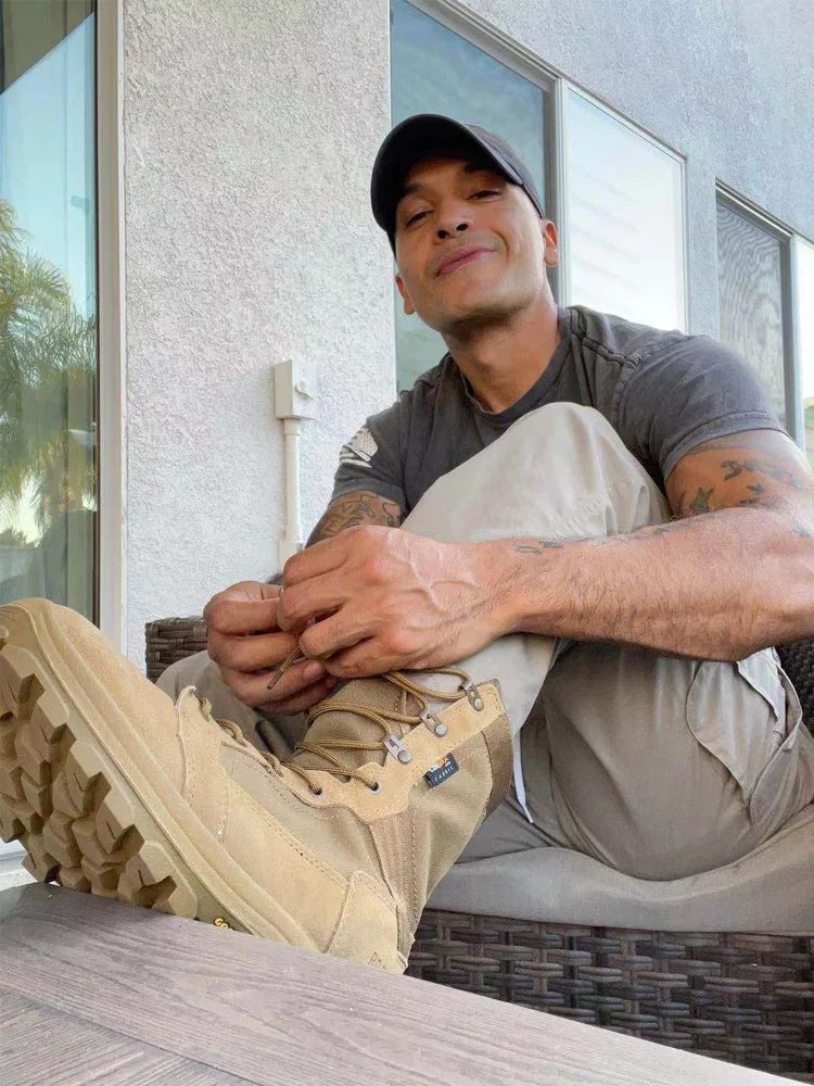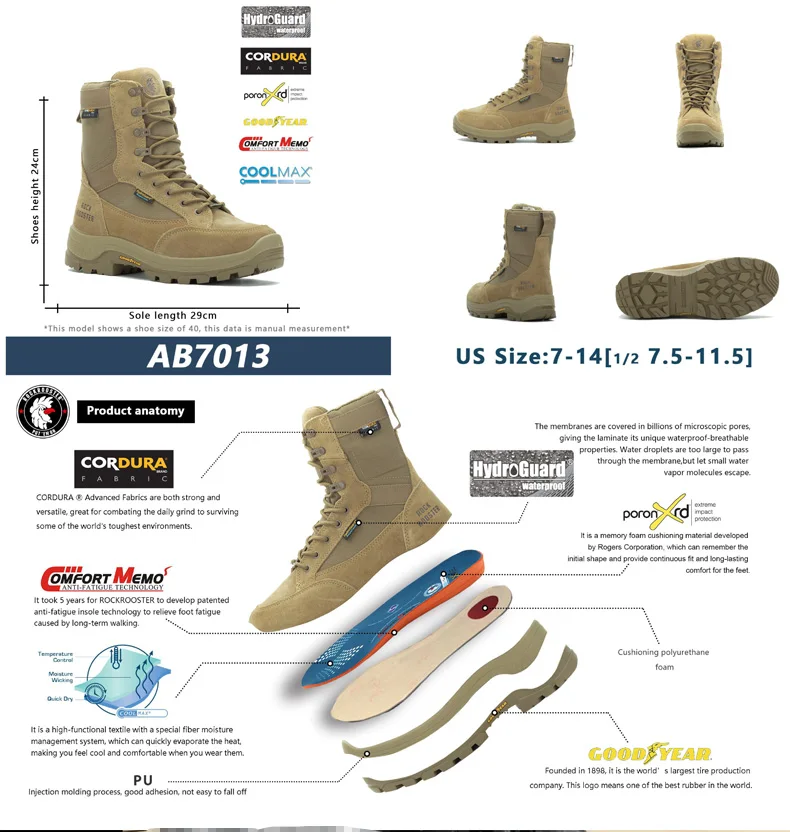 ROCKROOSTER-zapatos de senderismo para hombre, botas de caza impermeables, botas tácticas de combate para el desierto, zapatillas de deporte de cuero de vaca para trekking