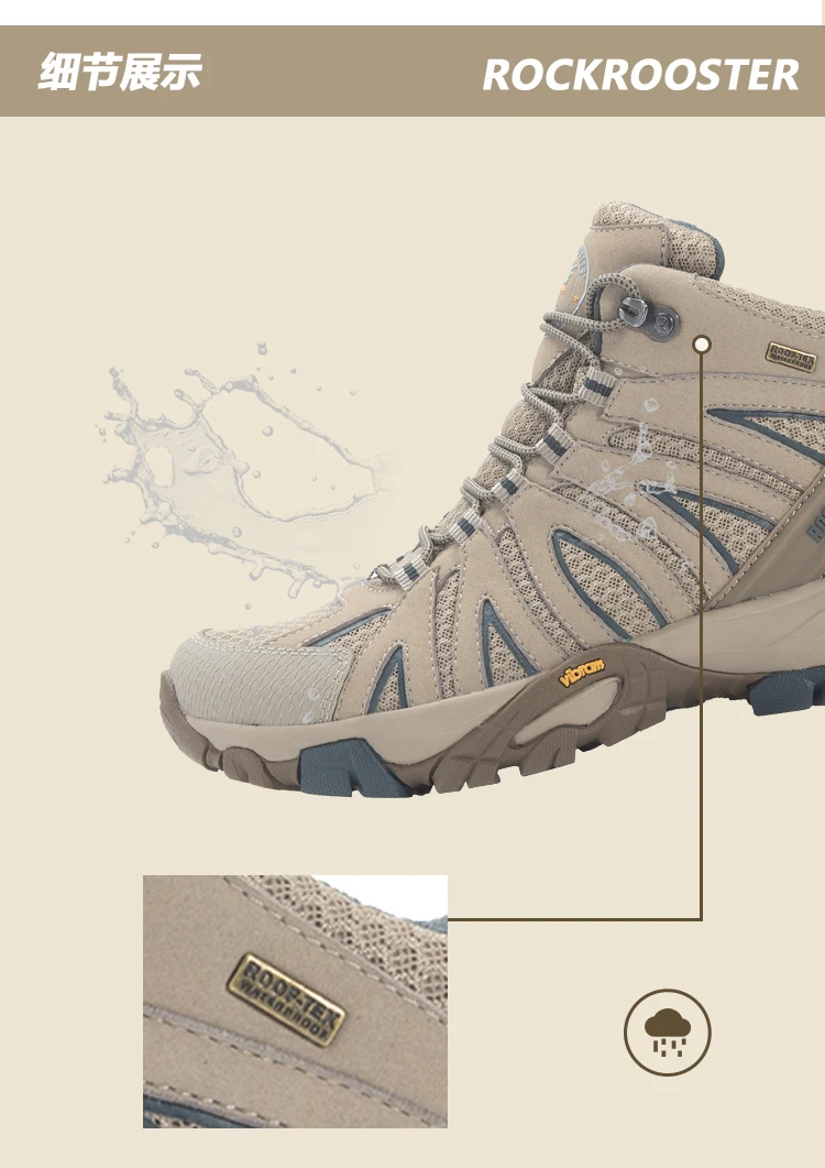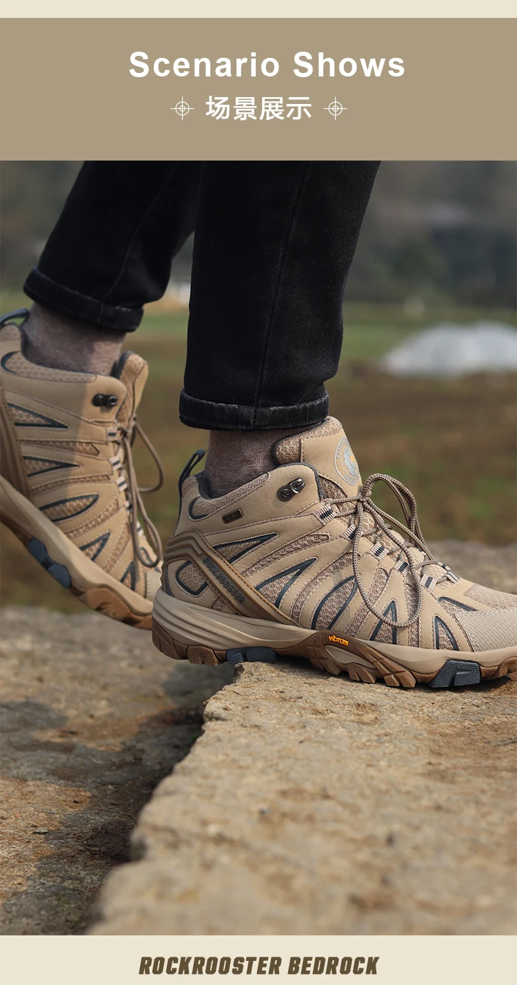ROCKROOSTER-zapatos de senderismo impermeables para hombre, botas tácticas de combate en el desierto, zapatillas de cuero de vaca para exteriores, zapatos de trekking