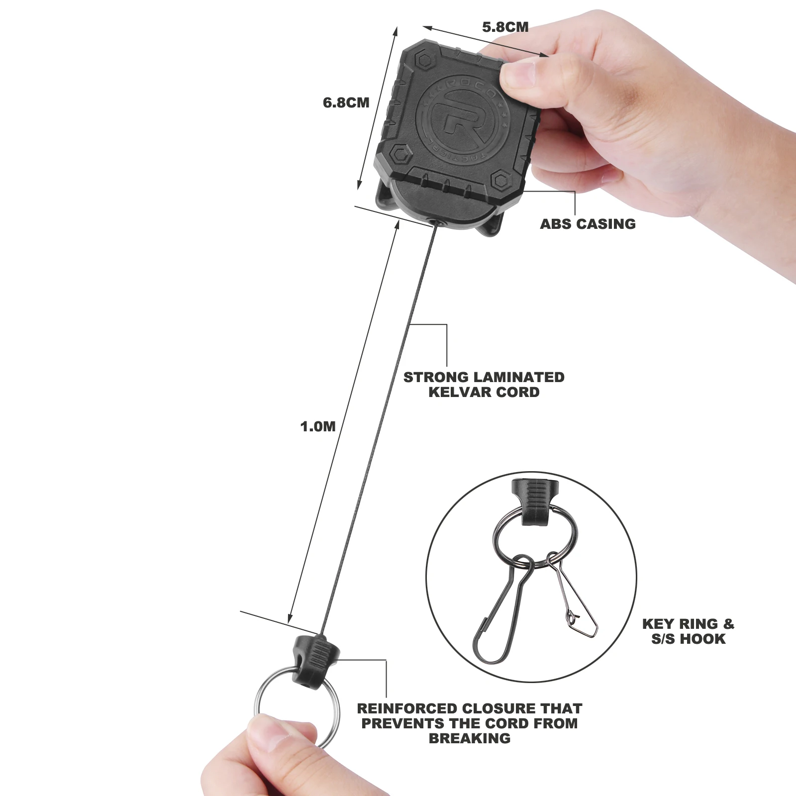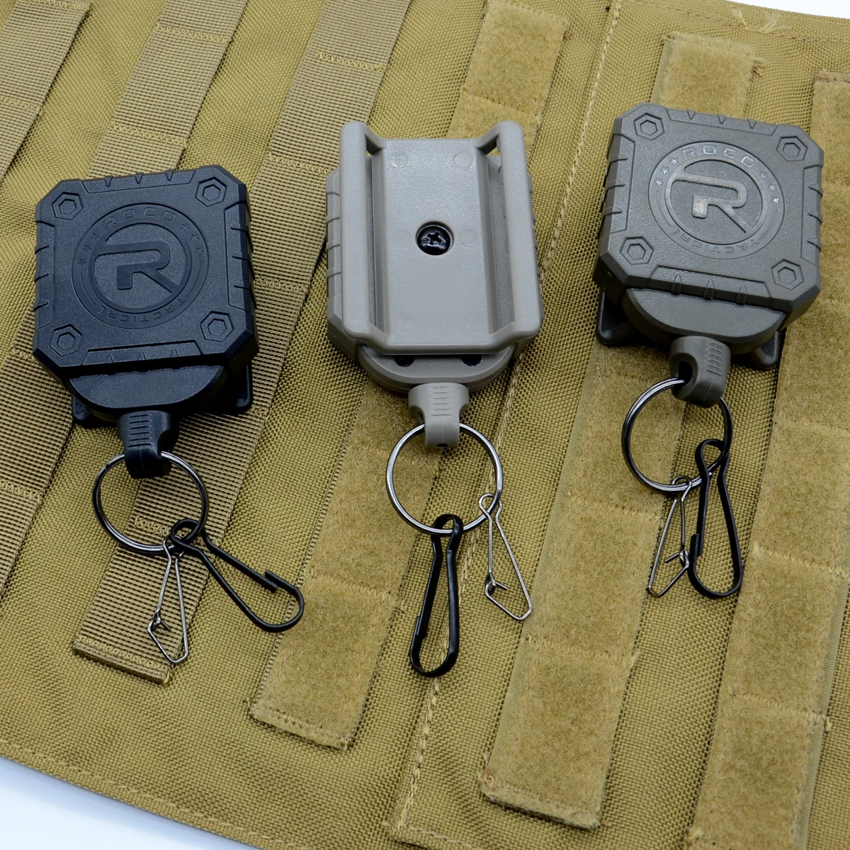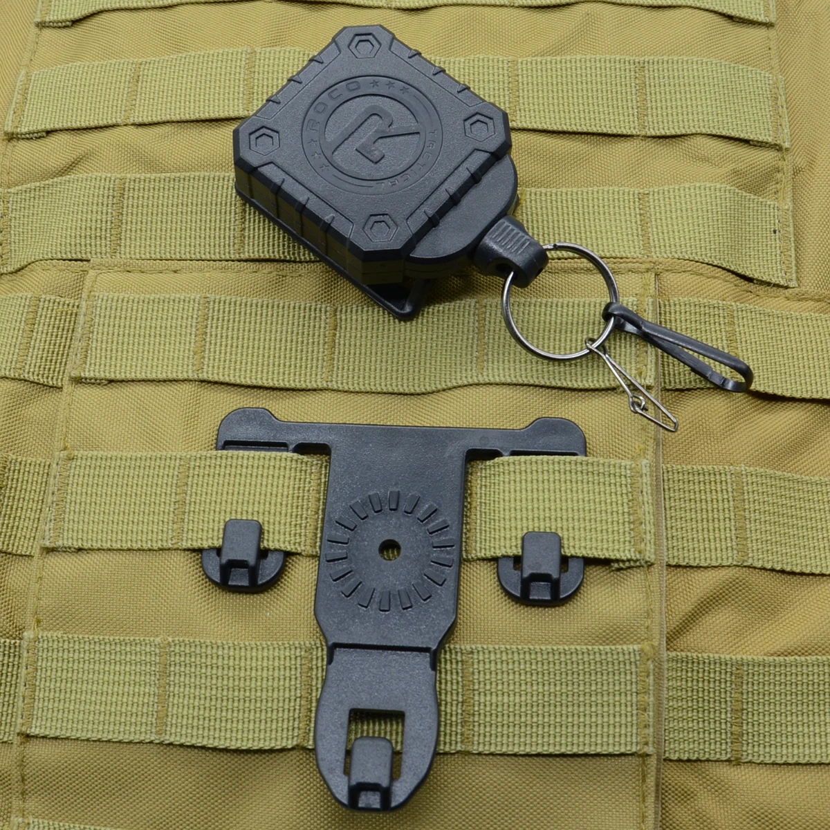 ROCOTACTICAL-carrete autoretráctil Molle, herramienta táctica, Cable de eslinga, mosquetón de alta resistencia, llavero, soporte de insignia de identificación, carrete de llave