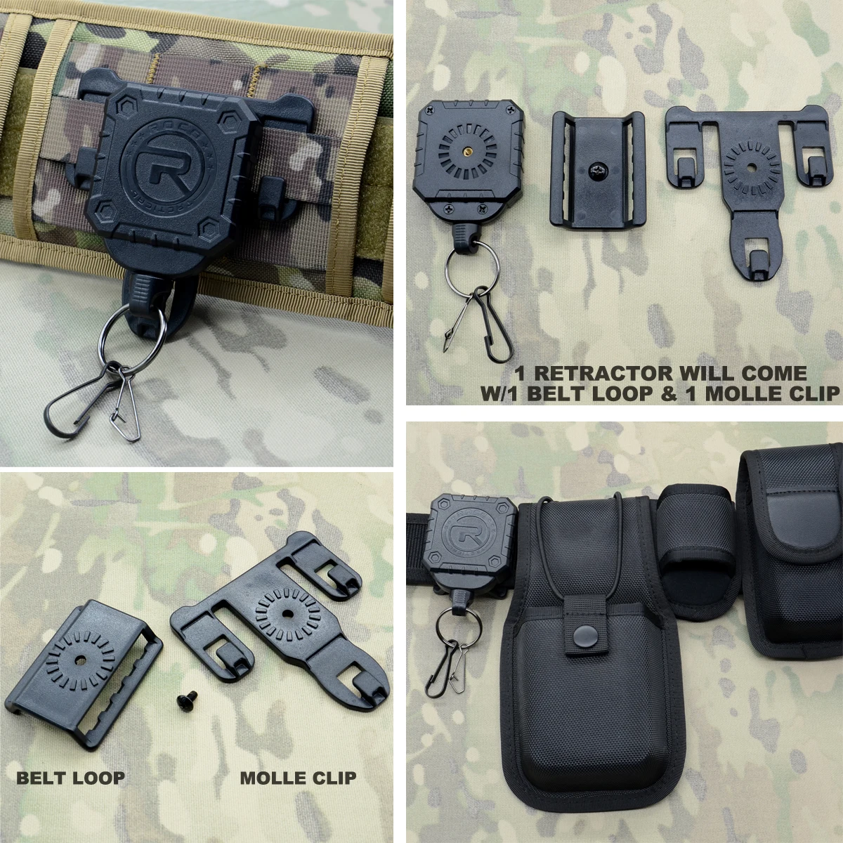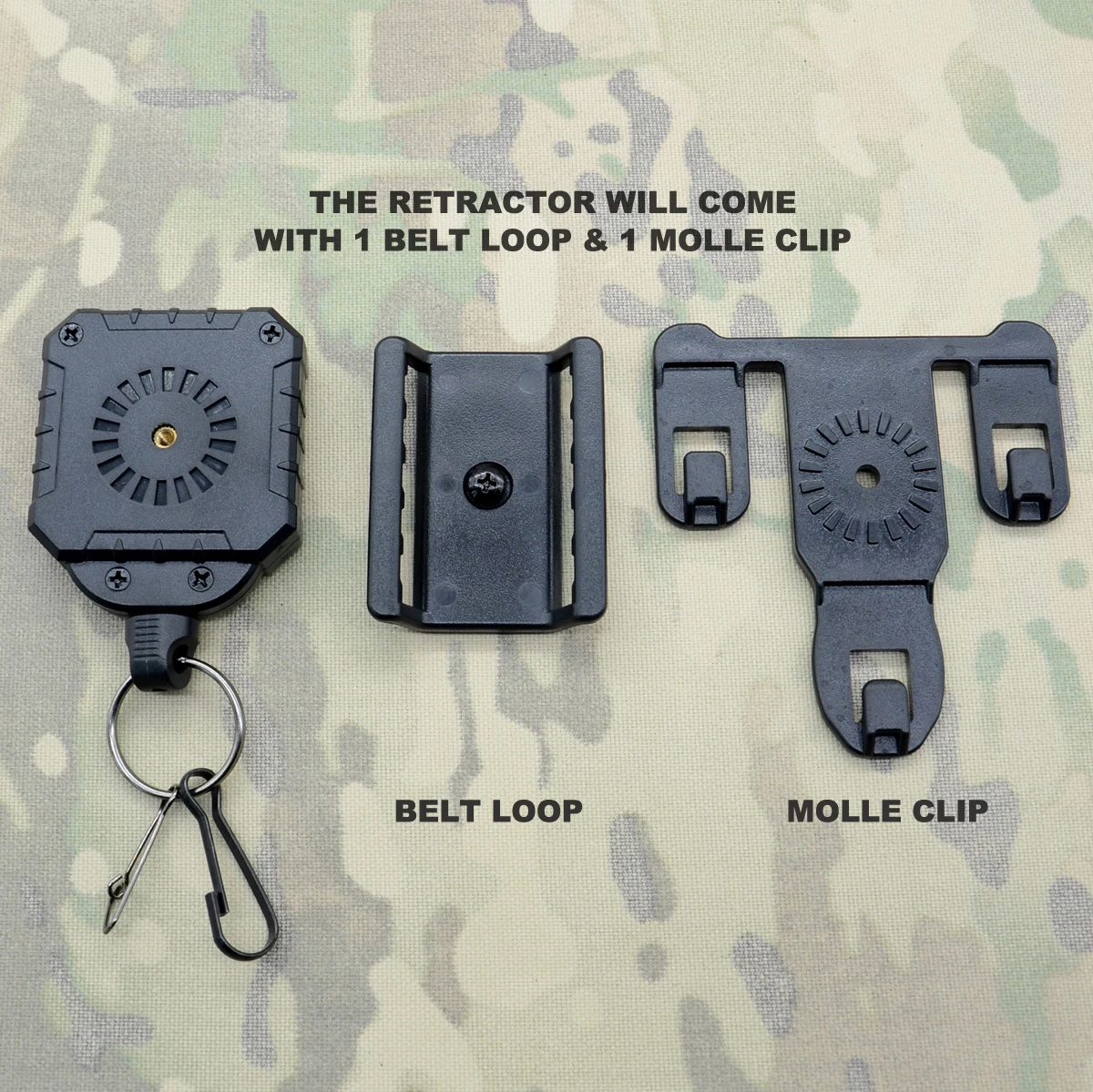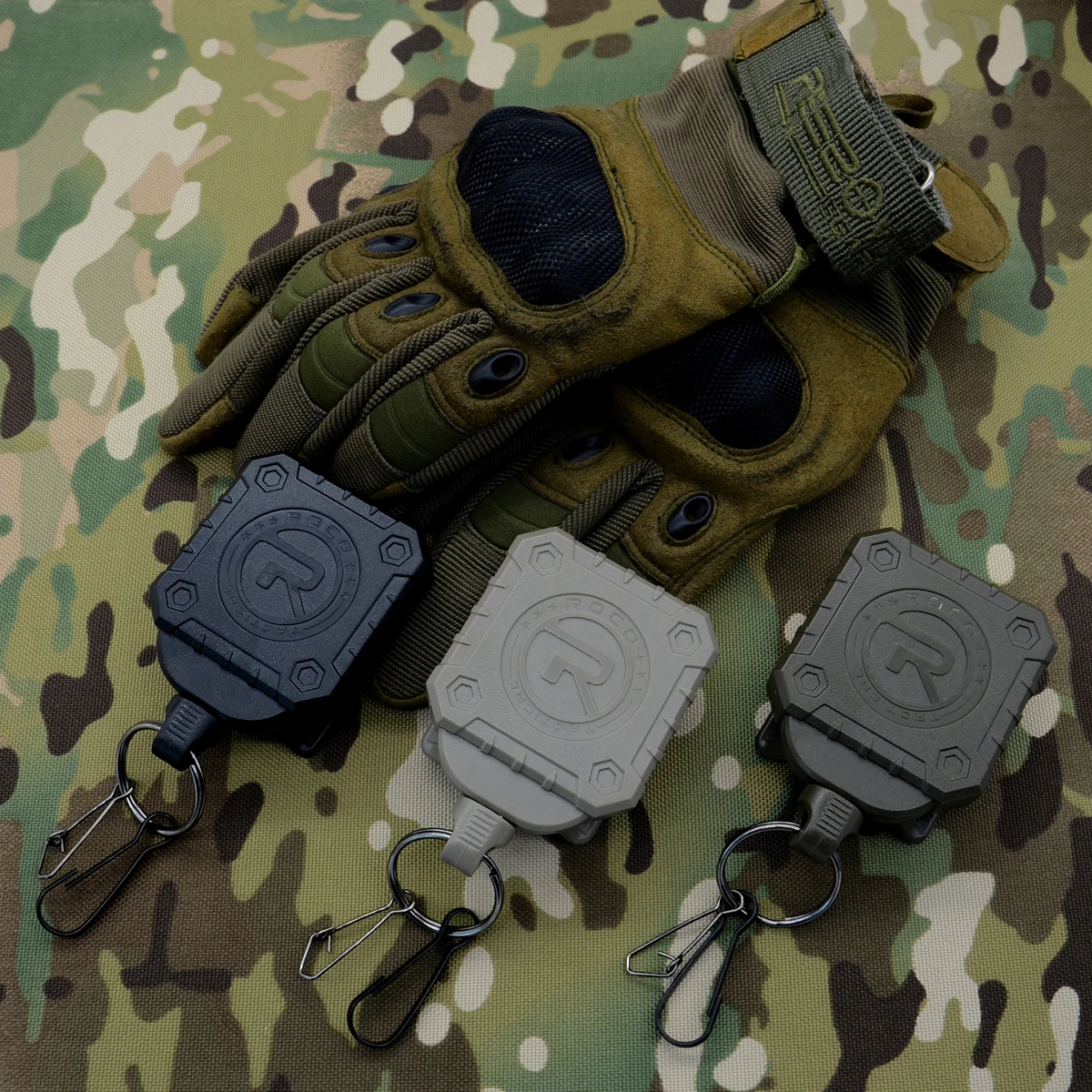 ROCOTACTICAL-carrete autoretráctil Molle, herramienta táctica, Cable de eslinga, mosquetón de alta resistencia, llavero, soporte de insignia de identificación, carrete de llave