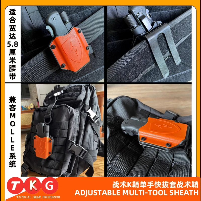 Fácil de llevar todos los días. Cuando salga, la funda se puede colgar directamente en su cinturón, la funda ligera no le hará sentir ninguna carga, ligera y cómoda. Siempre puede mantener sus multiherramientas diarias. Fácil acceso, lo que lo convierte en el accesorio perfecto para su EDC favorito. El clip también es compatible con MOLLE, se puede montar en el sistema MOLLE en su mochila táctica, chaleco táctico, bolsas MOLLE EDC, etc.