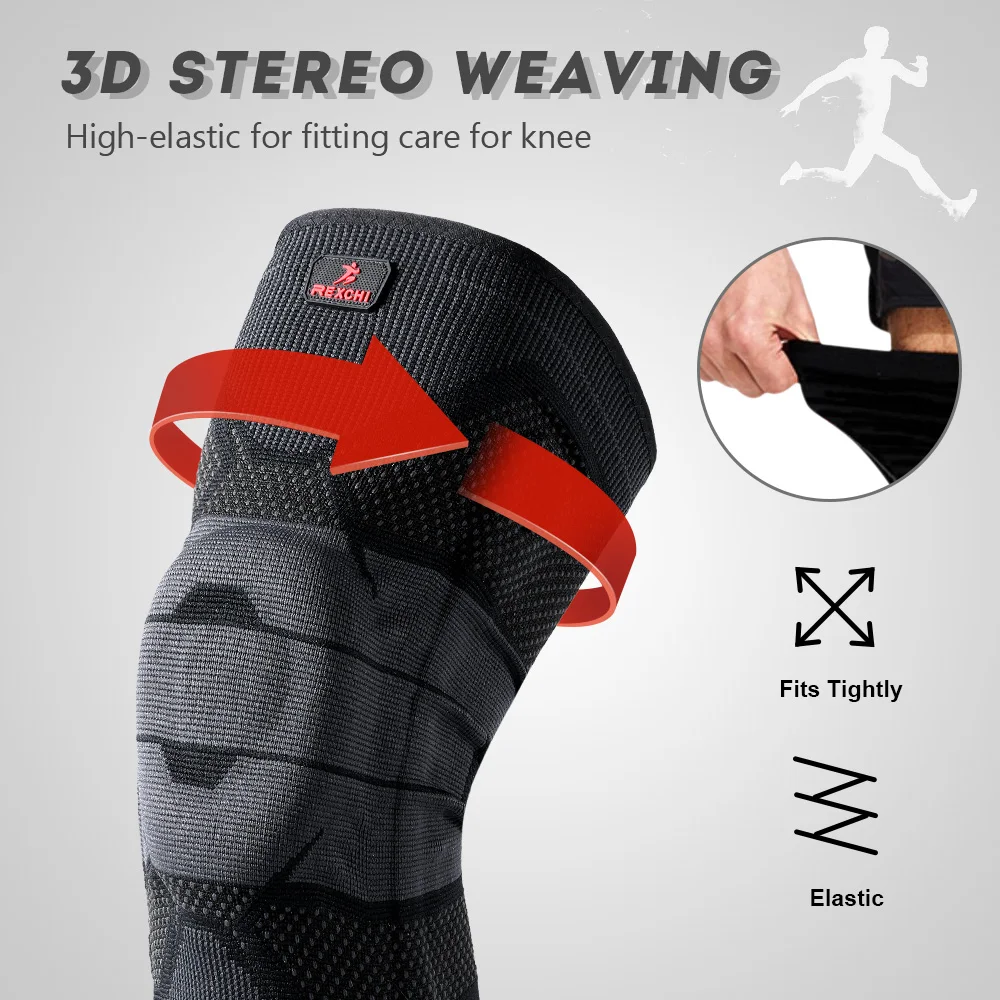 Tira antideslizante de goma de silicona, el forro interior adopta silicona, diseño de tira antideslizante de goma para evitar eficazmente que las rodilleras se deslicen durante el ejercicio.