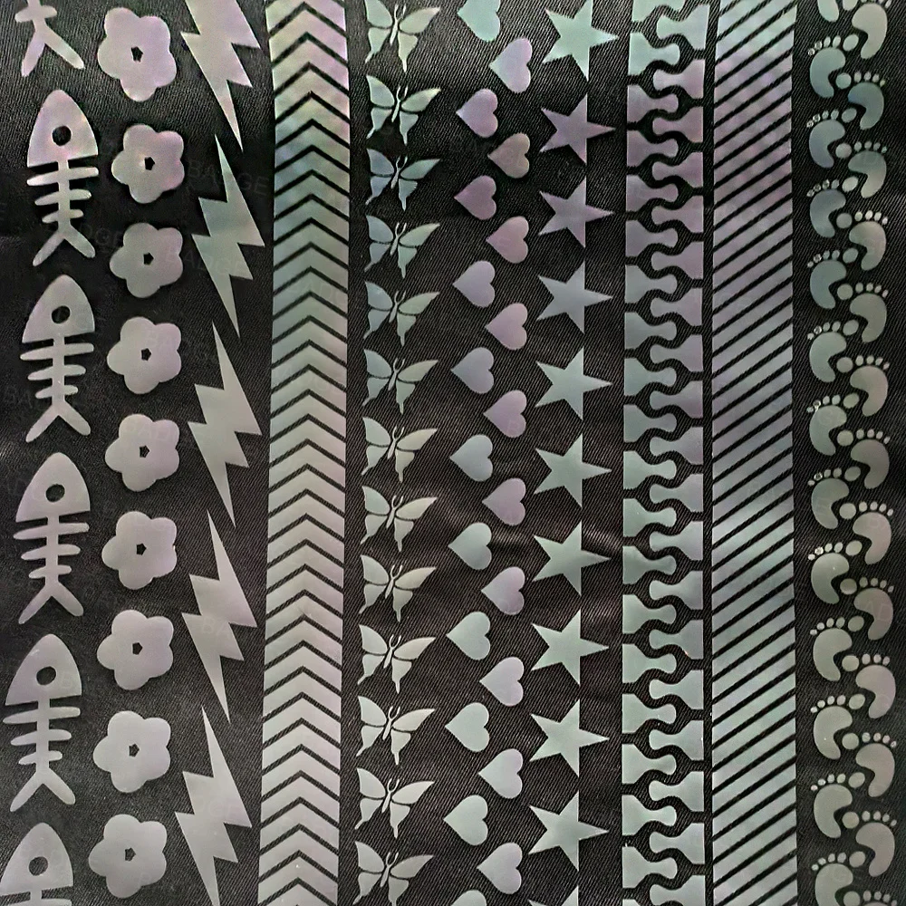 Cinta adhesiva reflectante de estrella y corazón de 2,7x70cm para ropa, bolsas de hierro, camiseta, pegatina transferida por calor, decoración de prendasMaterial: PES/TPU
