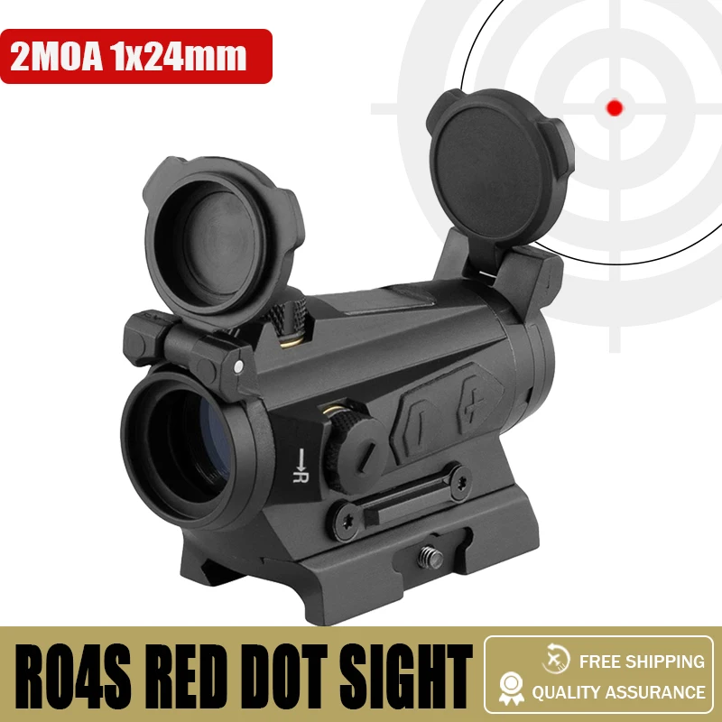 Romeo4S-mira telescópica de energía Solar con montura alta y tapas de lente para caza, punto rojo, óptica táctica, 2Moa, 1x24mm