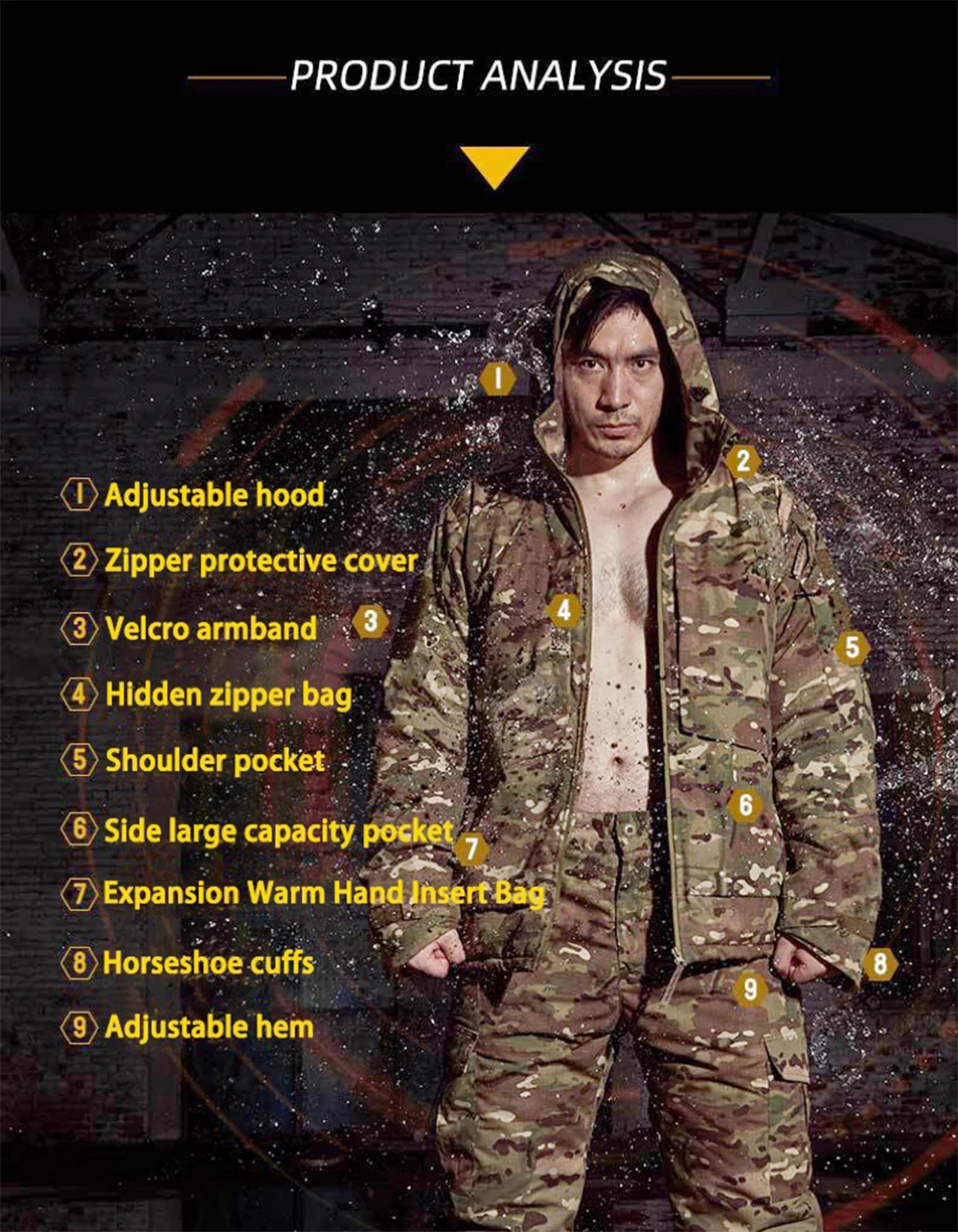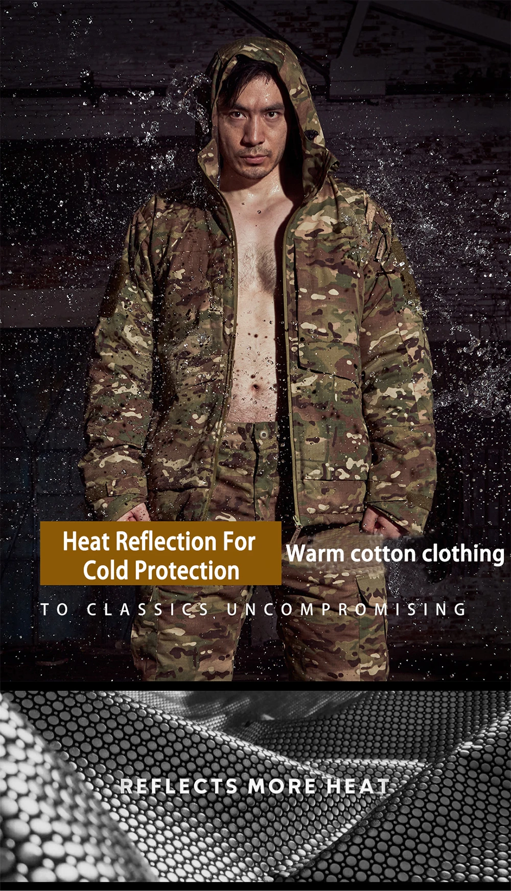 Ropa de algodón reflectante gruesa para exteriores, abrigo táctico de camuflaje para caza y invierno, resistente al viento y al frío