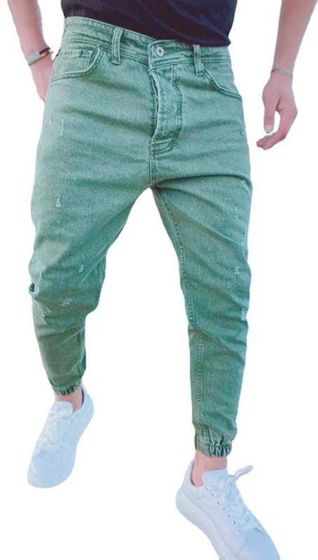 Ropa de calle para hombre, pantalones vaqueros rasgados de color caqui, pantalones vaqueros ajustados de EE. UU., pantalones vaqueros de Hip Hop, pantalones vaqueros informales nuevos para hombre, pantalones para correr para hombre