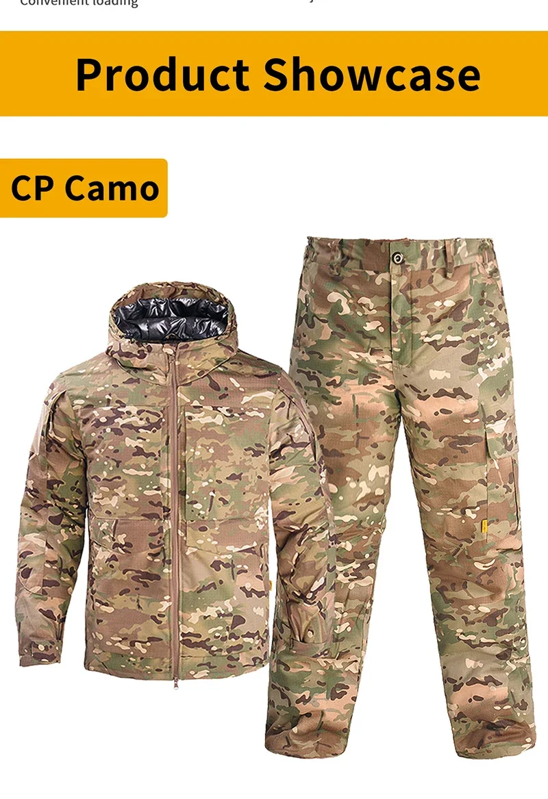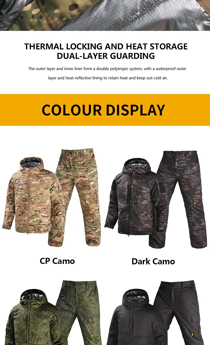 Winter Men Clothes Tactical Jacket Heating Suit Warmth Combat Cotton Uniform Softair Pants Windproof Thermal Hiking WindbreakerMaterial : 65% polyvinyl acetate + 35% cottonFeature:Jacket: