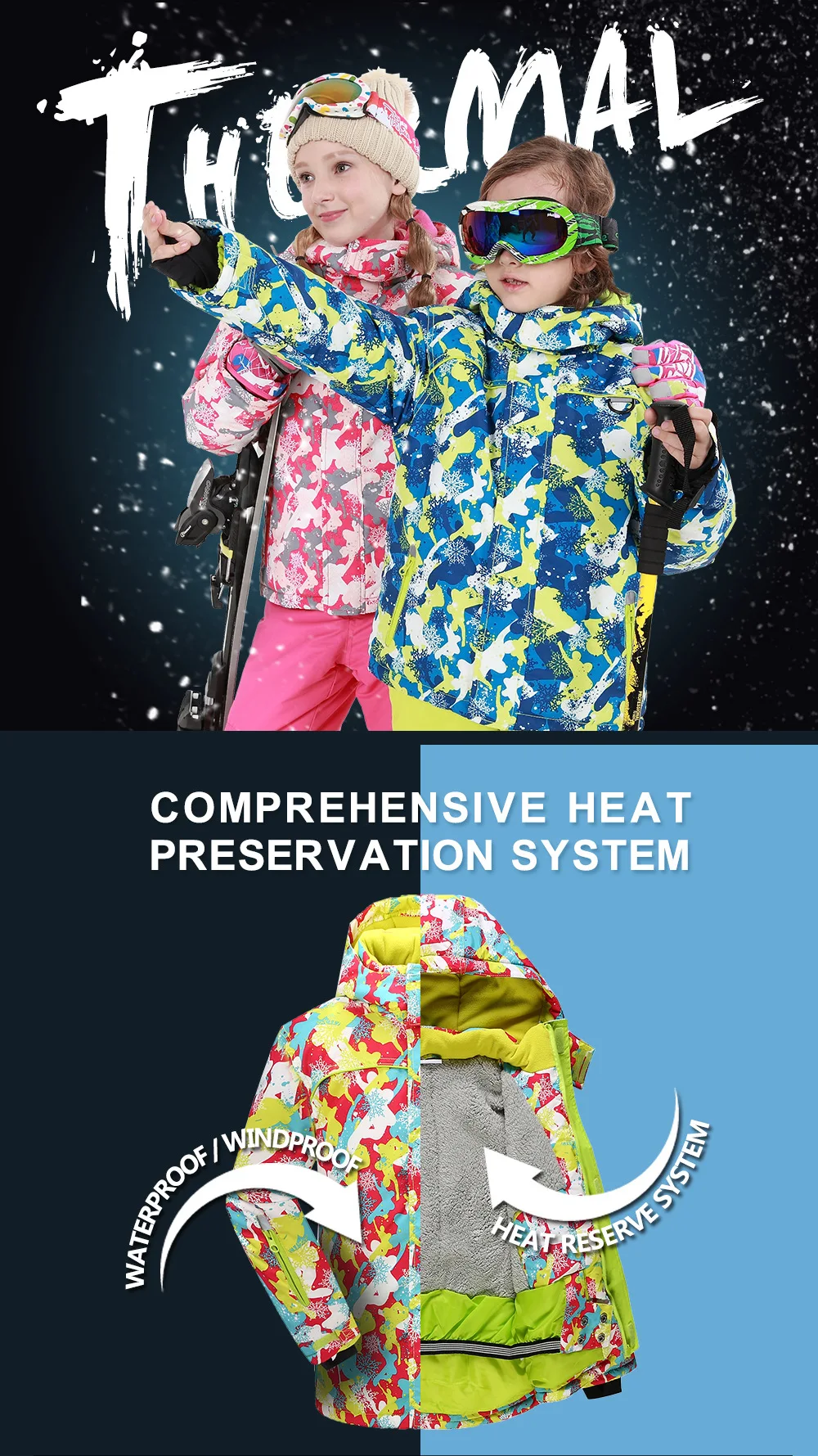 Ropa para niños, conjunto rompevientos para niños y niñas, traje de esquí para snowboard, ropa impermeable, traje para la nieve, chaqueta deportiva para adolescentes al aire libre, pantalones