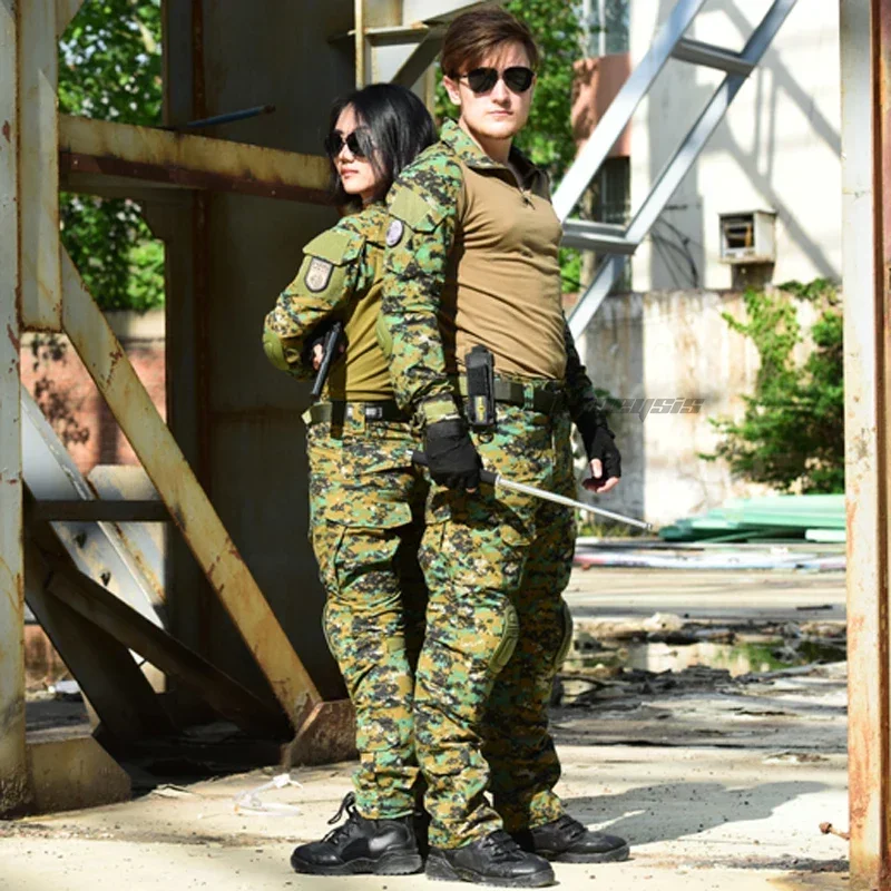Comprar Ropa de Paintball Airsoft para exteriores, uniforme de tiro, camuflaje táctico, camisas de combate para senderismo, pantalones Cargo, coderas y rodilleras