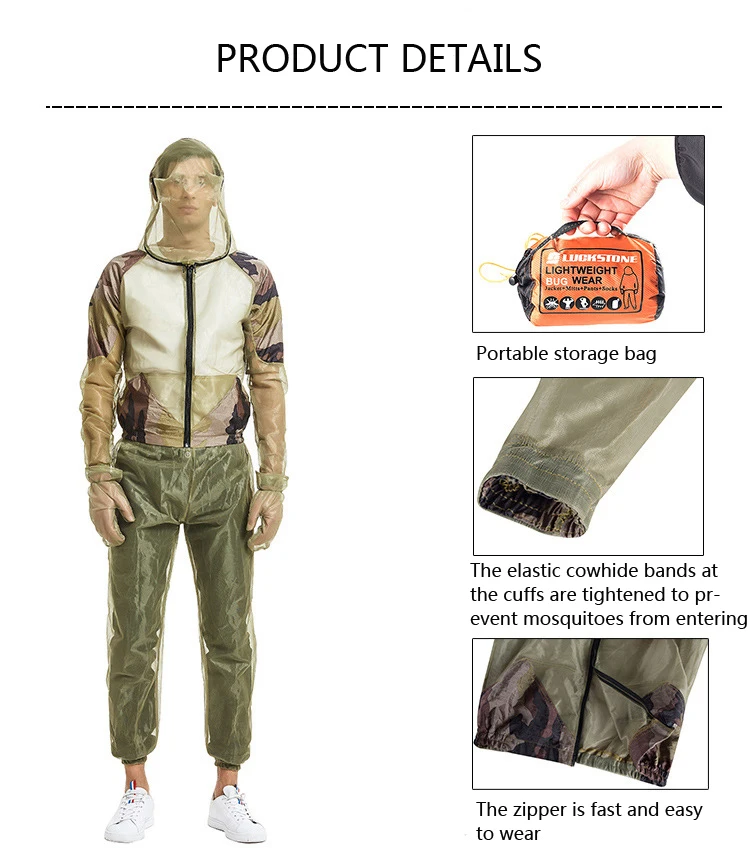 3. Chaqueta resistente a mosquitos con casco, guantes resistentes a los mosquitos, pantalones resistentes a los mosquitos y cubierta de pie resistente a los mosquitos