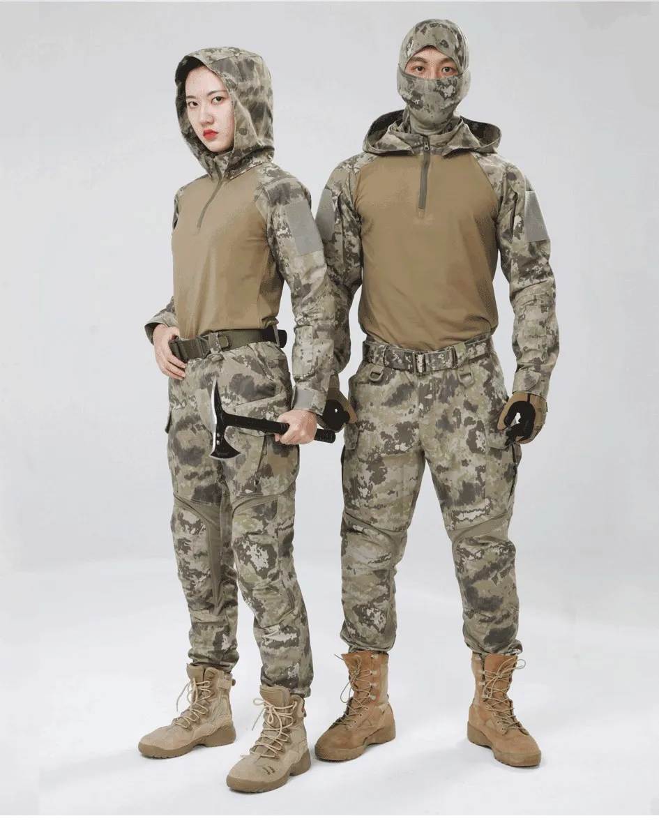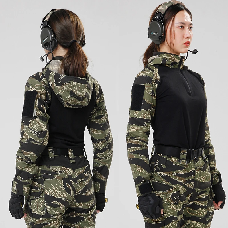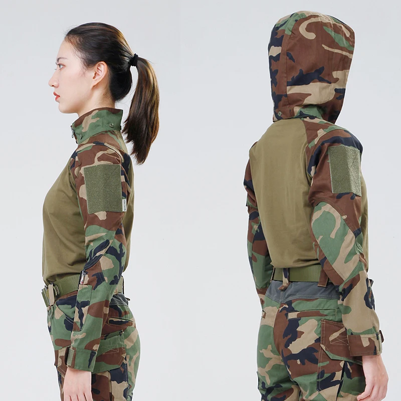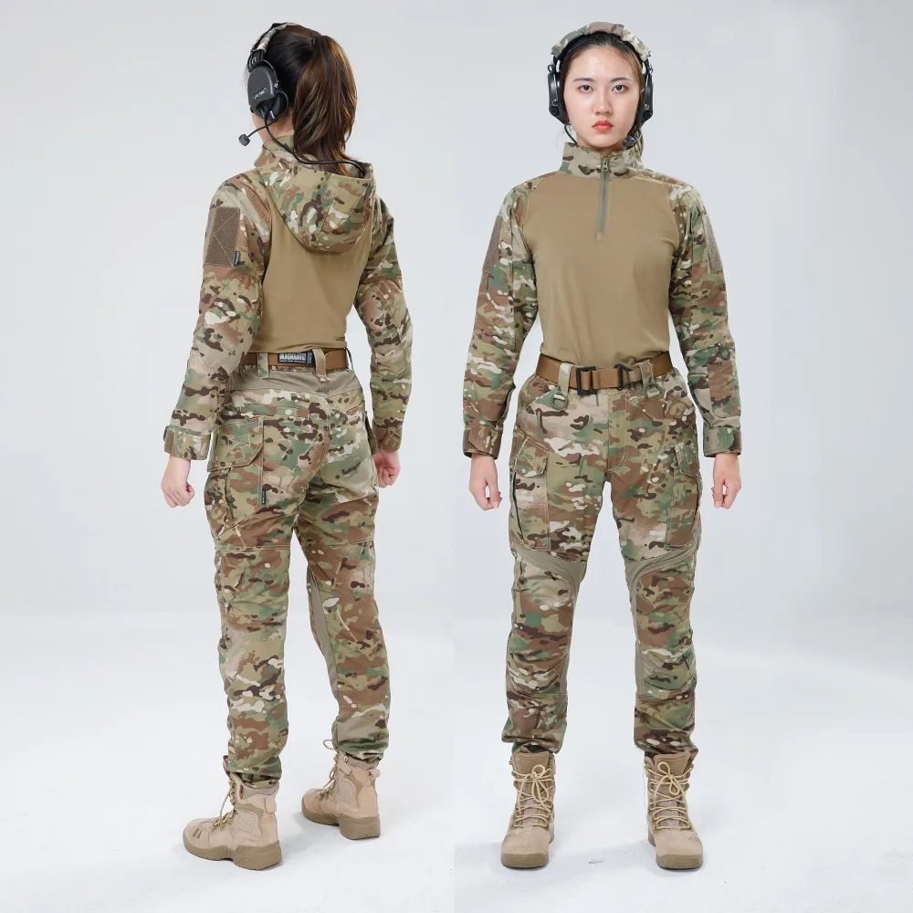 Ropa de rana con capucha de camuflaje, camisa de combate táctico, pantalones para mujer, conjuntos de entrenamiento del ejército CS al aire libre, trajes deportivos femeninos de primavera y otoño