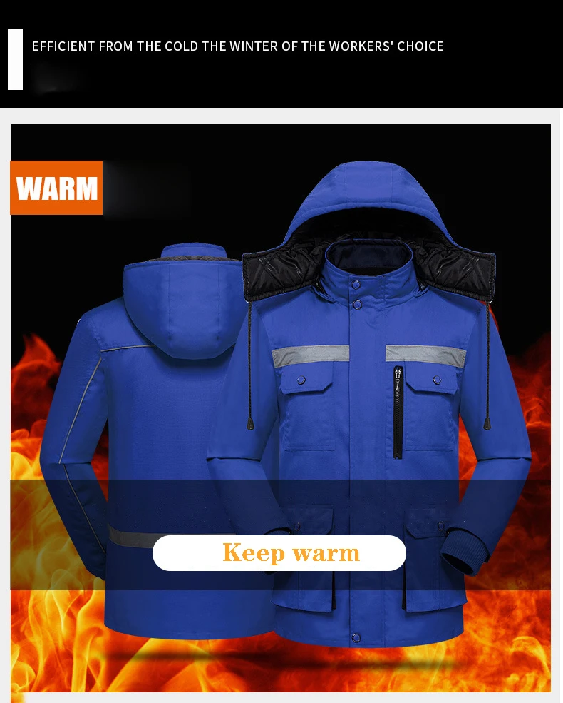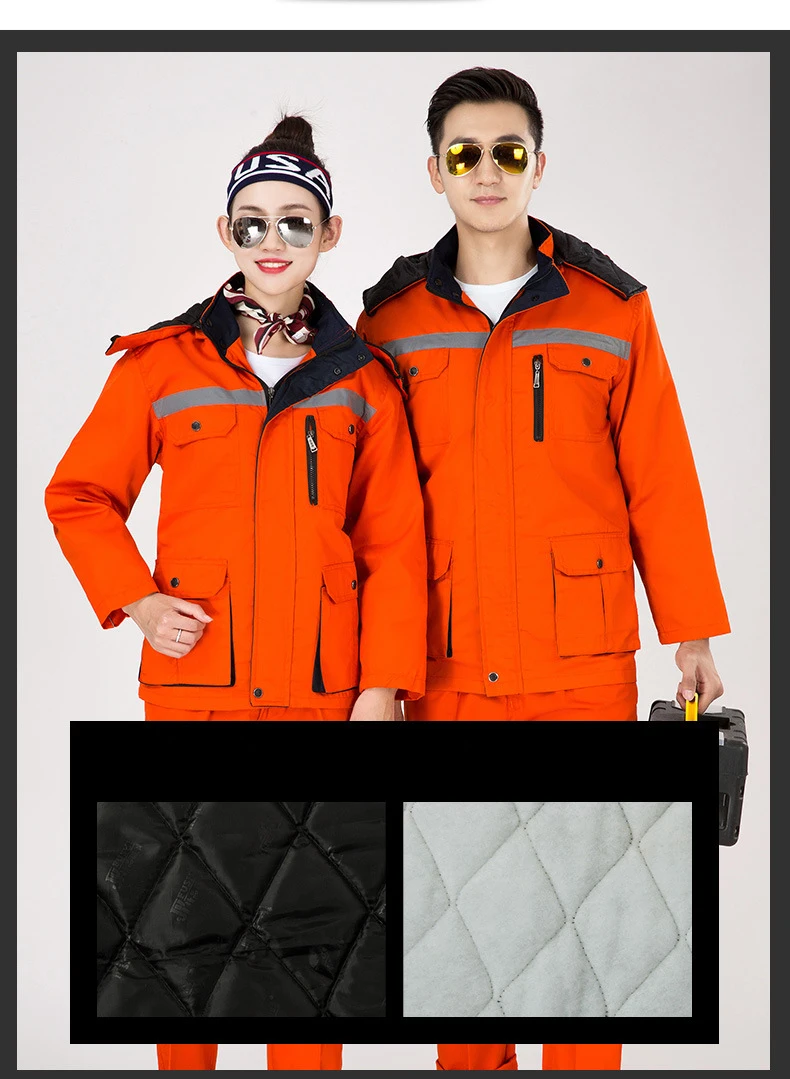 New Reflective Winter Outdoors Work Clothing Men Women Thick Jacket Windproof Electric Factory Workshop Hooded Durable Warm Coat Reflective Winter Outdoors Work Clothing Men Women Thick Jacket Coat Windproof Factory Workshop Hooded Durable Worker Suit Parka miners workwear