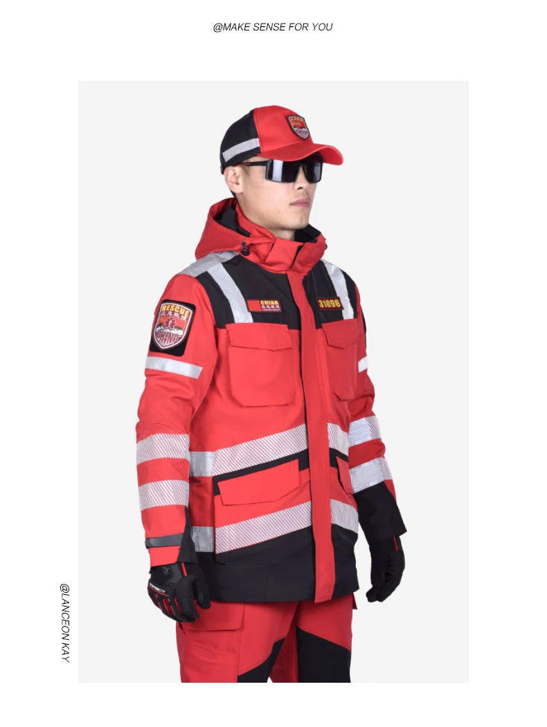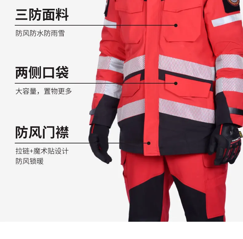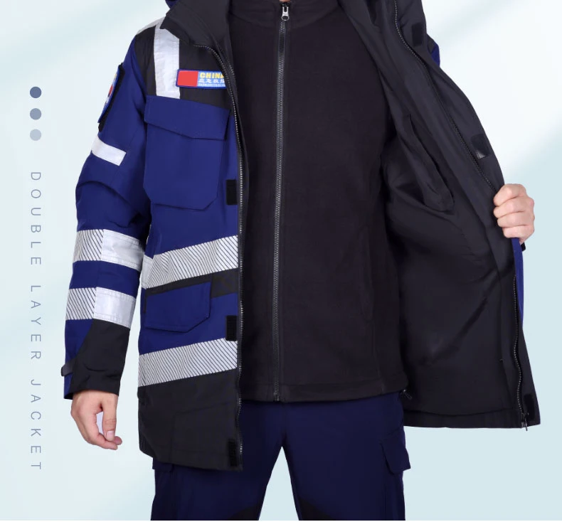 Ropa de rescate de emergencia tres en uno, chaqueta de tormenta, Chaqueta de algodón, impermeable, ropa de trabajo cálida