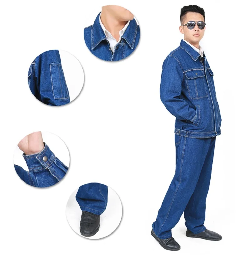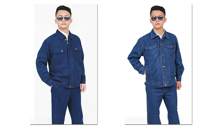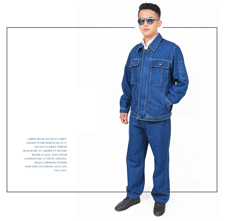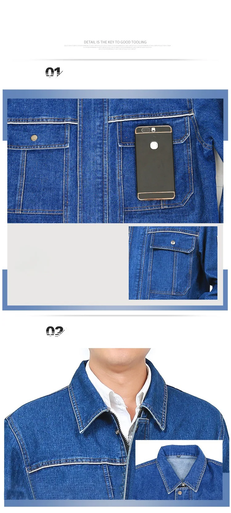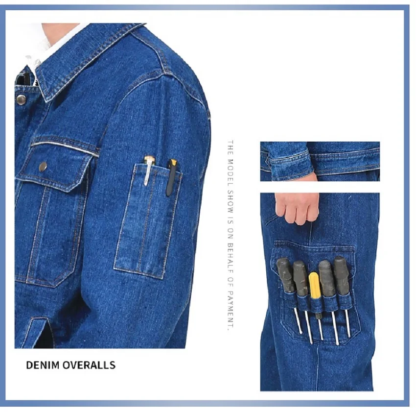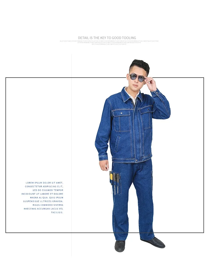 202 New100% Cotton Denim Work Clothing Set Men Women Thick Autumn Winter Machine Repair Workshop Overall Wear Resistant Uniform Welding Clothing Denim working Uniforms long sleeves Durable Wear resistant Jeans jacket pants Multi Pockets Repairmen Electric
