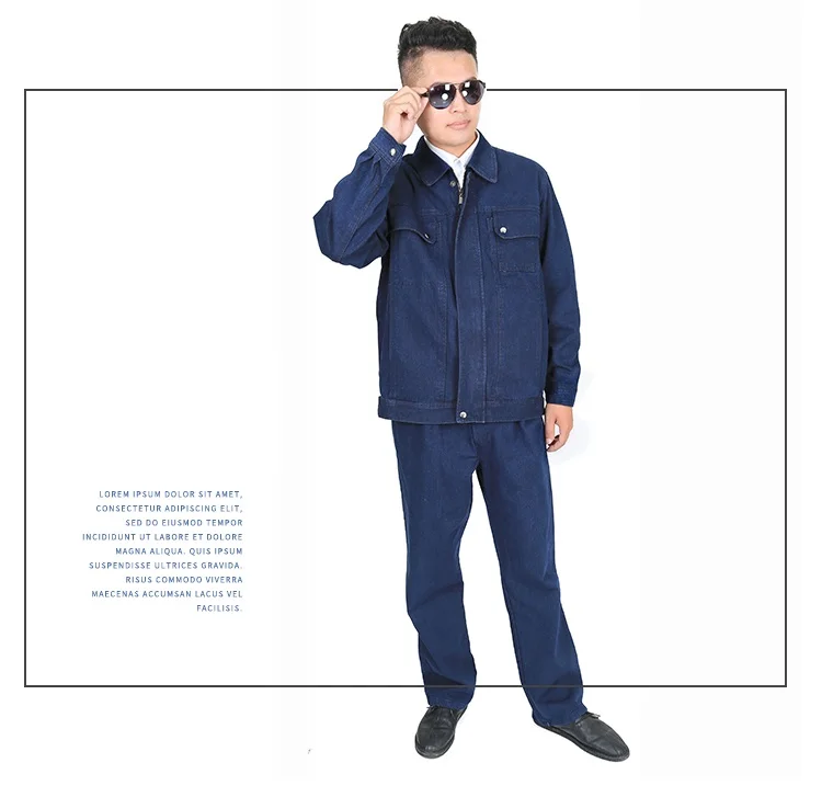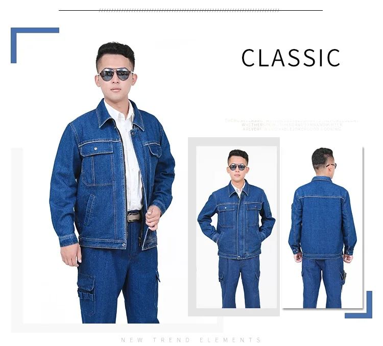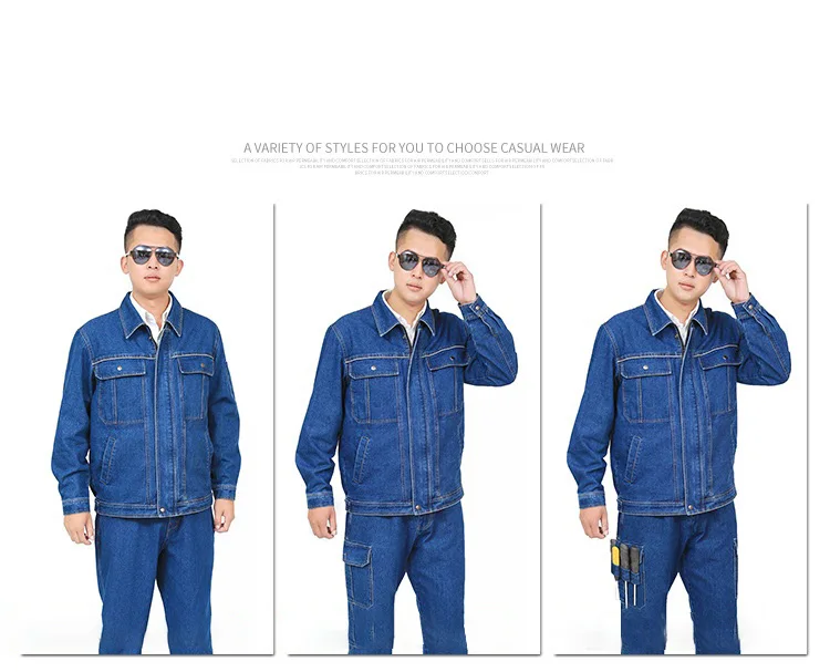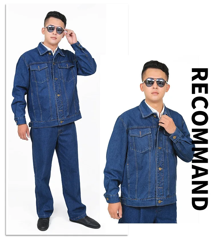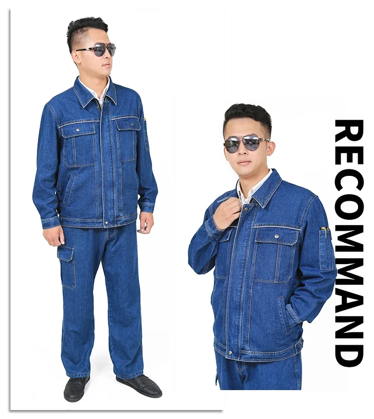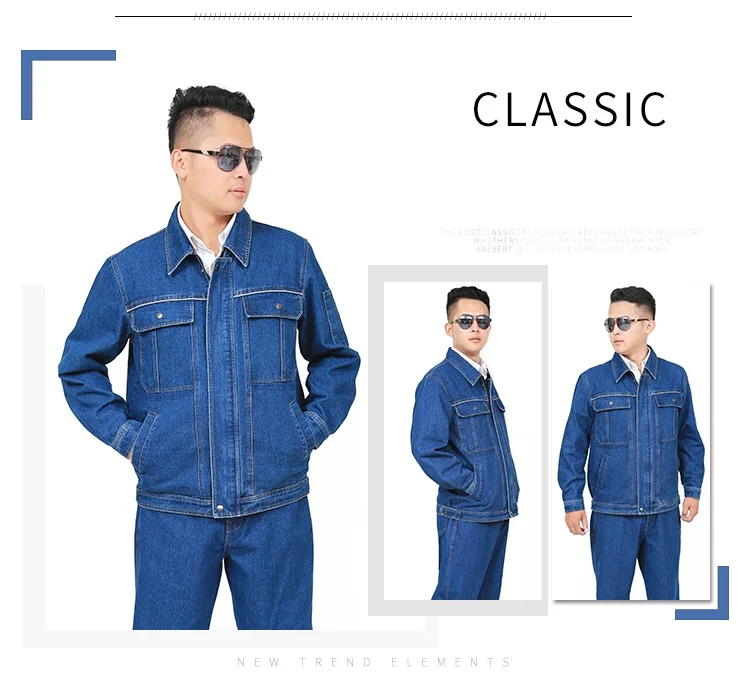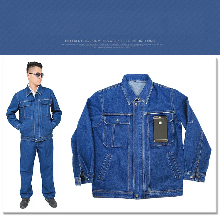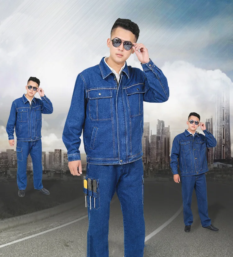 202 New100% Cotton Denim Work Clothing Set Men Women Thick Autumn Winter Machine Repair Workshop Overall Wear Resistant Uniform Welding Clothing Denim working Uniforms long sleeves Durable Wear resistant Jeans jacket pants Multi Pockets Repairmen Electric