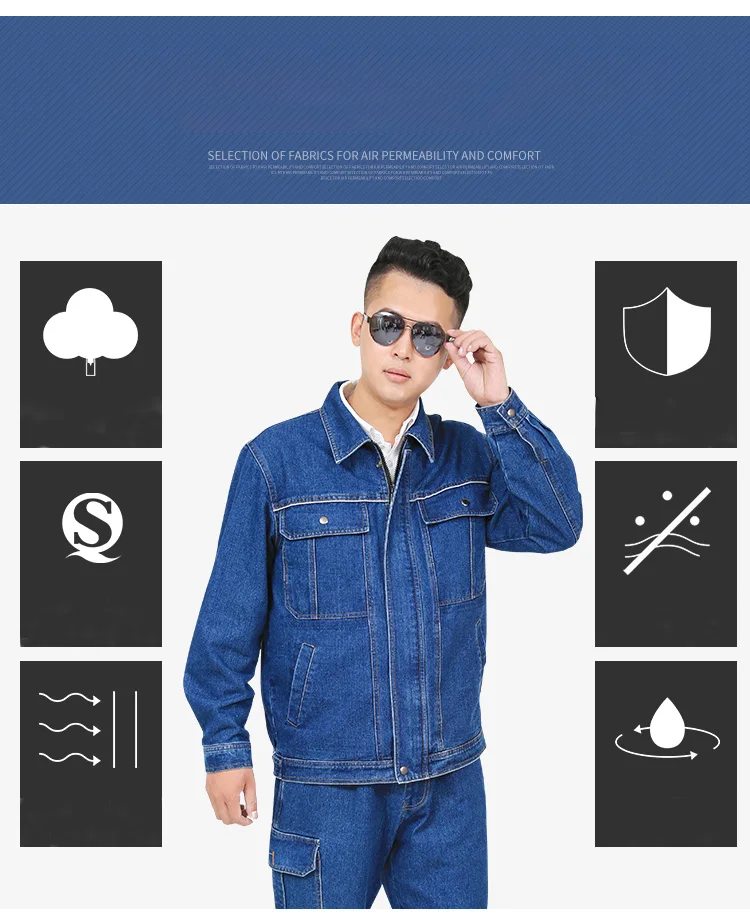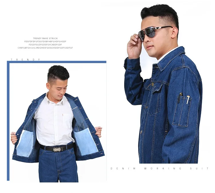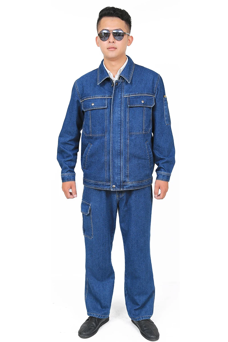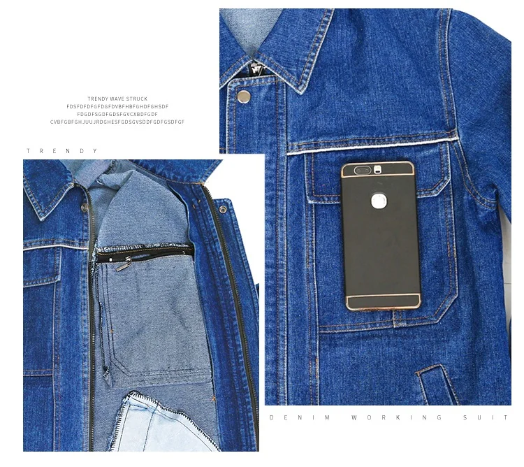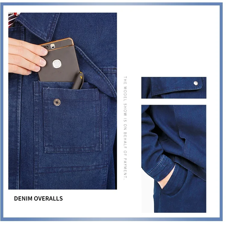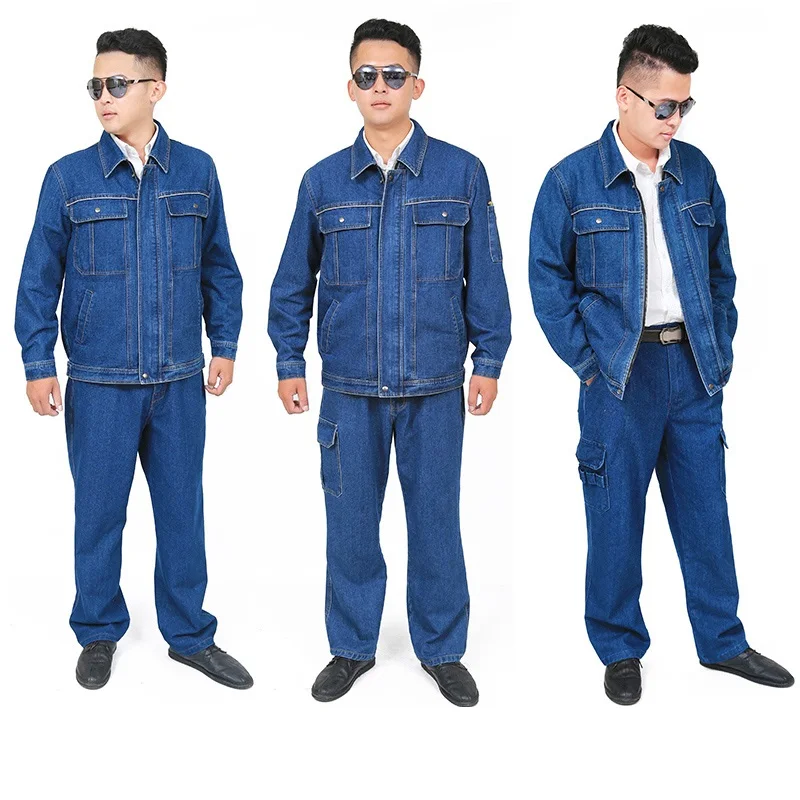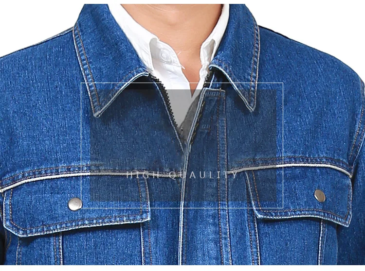 202 New100% Cotton Denim Work Clothing Set Men Women Thick Autumn Winter Machine Repair Workshop Overall Wear Resistant Uniform Welding Clothing Denim working Uniforms long sleeves Durable Wear resistant Jeans jacket pants Multi Pockets Repairmen Electric