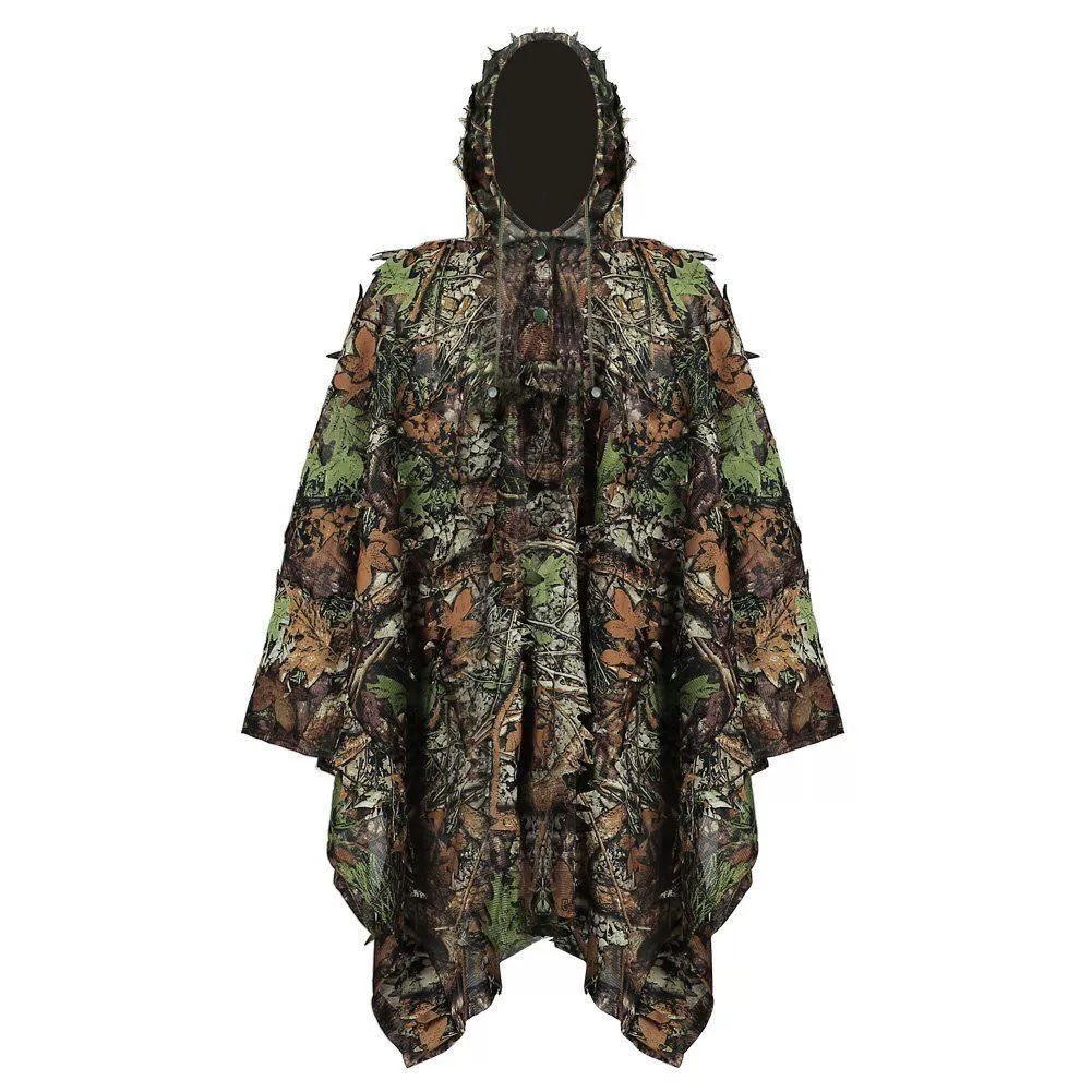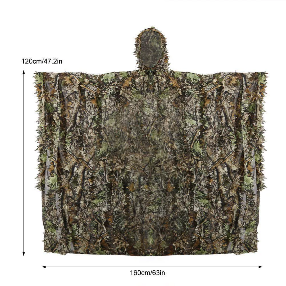 Ropa de la suerte al aire libre, ropa de hoja de árbol, ropa de camuflaje transpirable y cómoda, capa con capucha, 120 * 160 cm