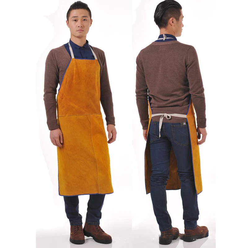 Cowhide Leather Work Clothing Apron Flame Retardant Electric Heavy Duty Factory Blacksmith Safety Welder Workshop Bib For Men