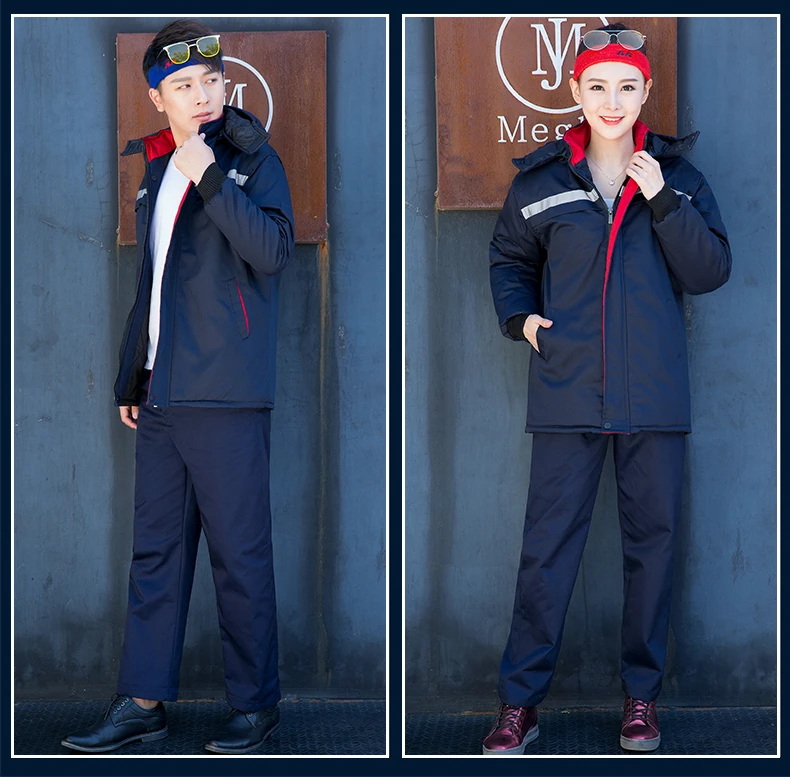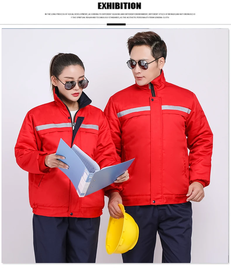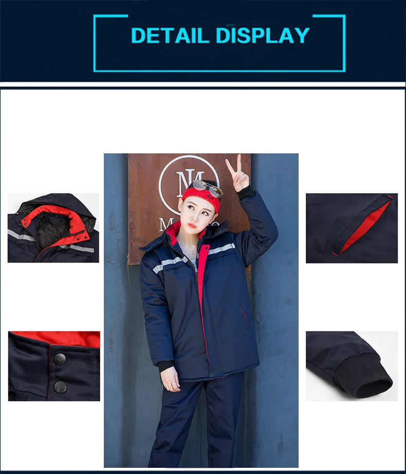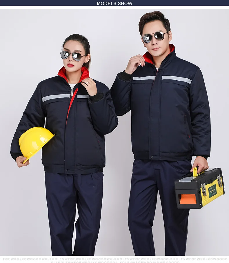 Winter New Work Clothing Set Men Women Reflective Cold Protection Machine Repair Workshop Overall Wear Resistant Uniform Winter Work Clothing For Men Women Reflective Cold Protection Warm Machine Repairmen Workshop Jacket Coat Wear Resistant Uniform