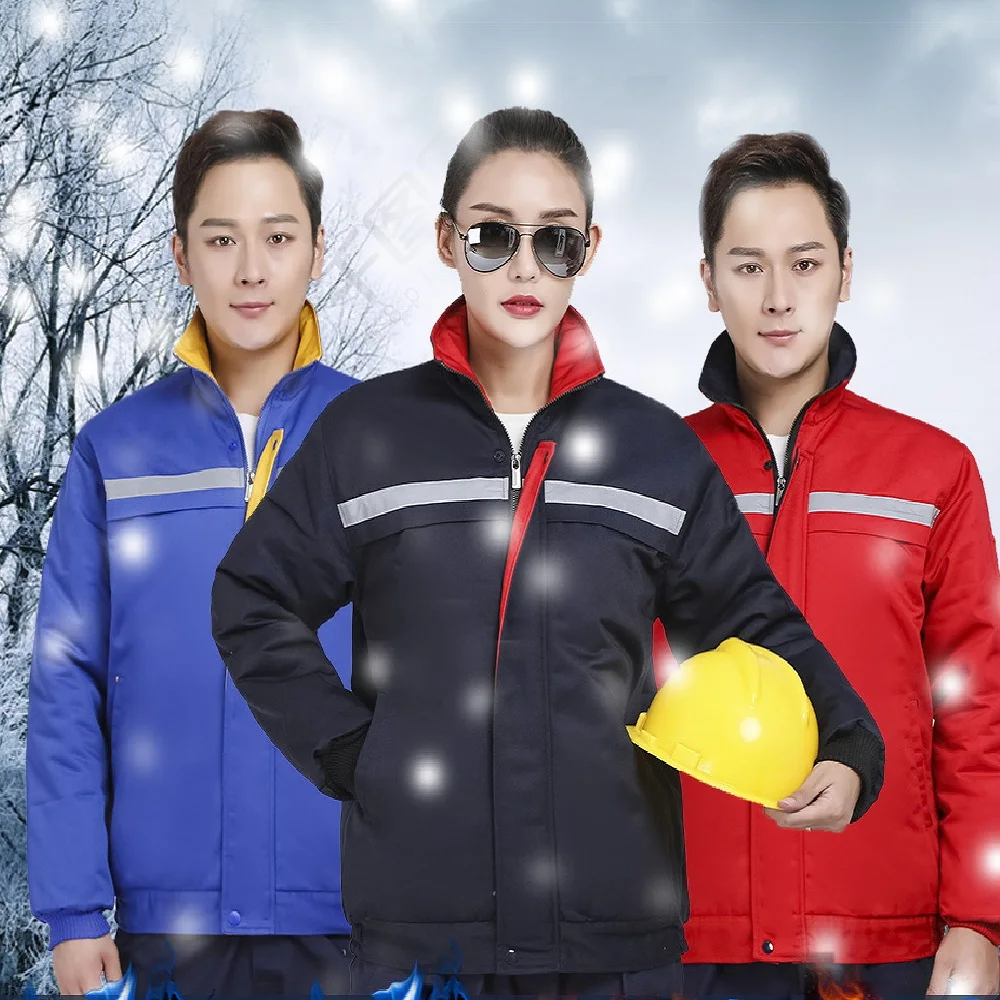 Winter New Work Clothing Set Men Women Reflective Cold Protection Machine Repair Workshop Overall Wear Resistant Uniform Winter Work Clothing For Men Women Reflective Cold Protection Warm Machine Repairmen Workshop Jacket Coat Wear Resistant Uniform