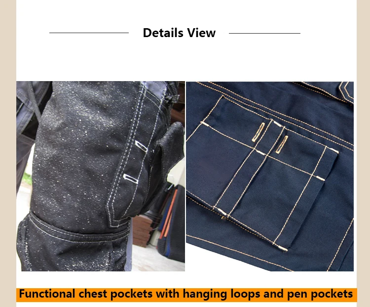 Ropa de trabajo, monos, babero y tirantes de trabajo, pantalones generales, pantalones, monos de garaje, monos mecánicos de trabajo con múltiples bolsillos y rodilleras