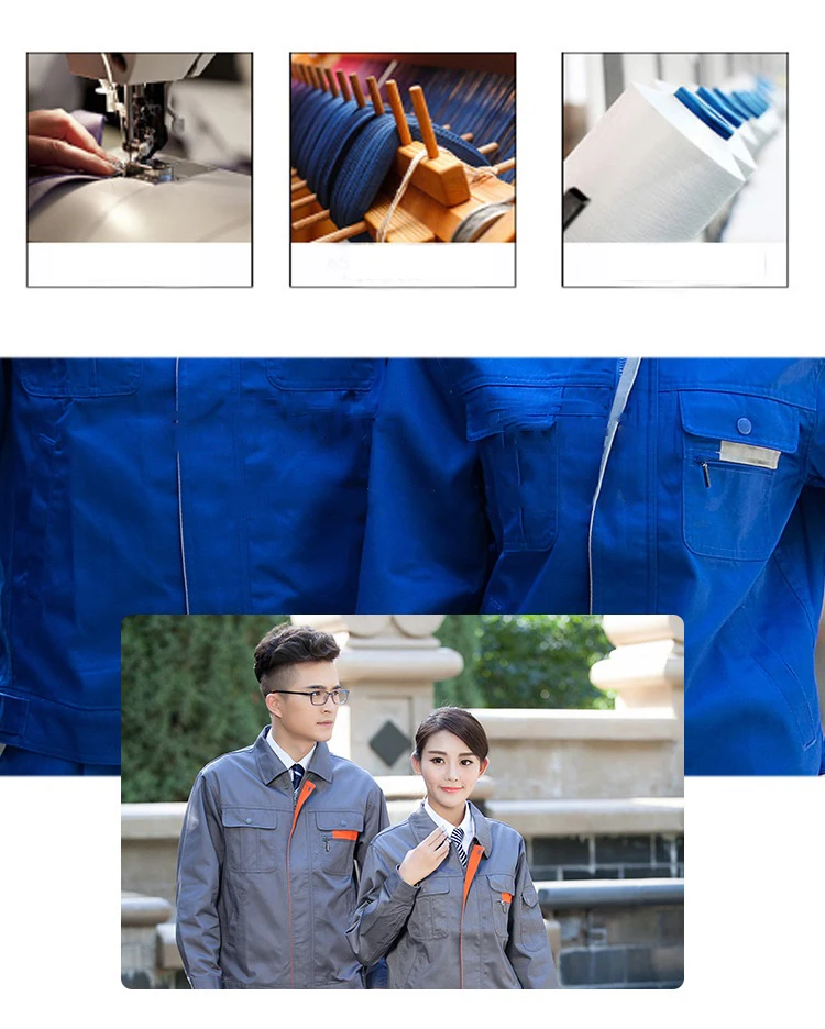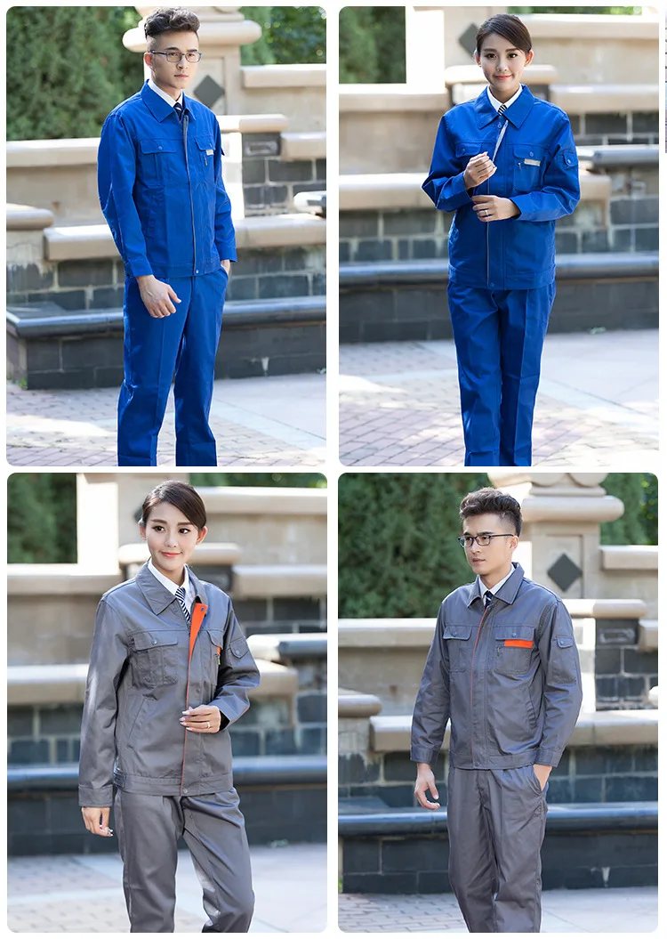 Nueva ropa de trabajo de primavera para hombres y mujeres, chaquetas de seguridad + pantalones, máquina, taller de soldador de reparación de automóviles, monos duraderos, uniformes de electricidad, ropa de trabajo de primavera, chaquetas de seguridad para hombres y mujeres, máquina de pantalones, taller de fábrica de reparación de automóviles, uniformes de electricidad duraderosMaterial: mezcla de algodónTabla de tallas
