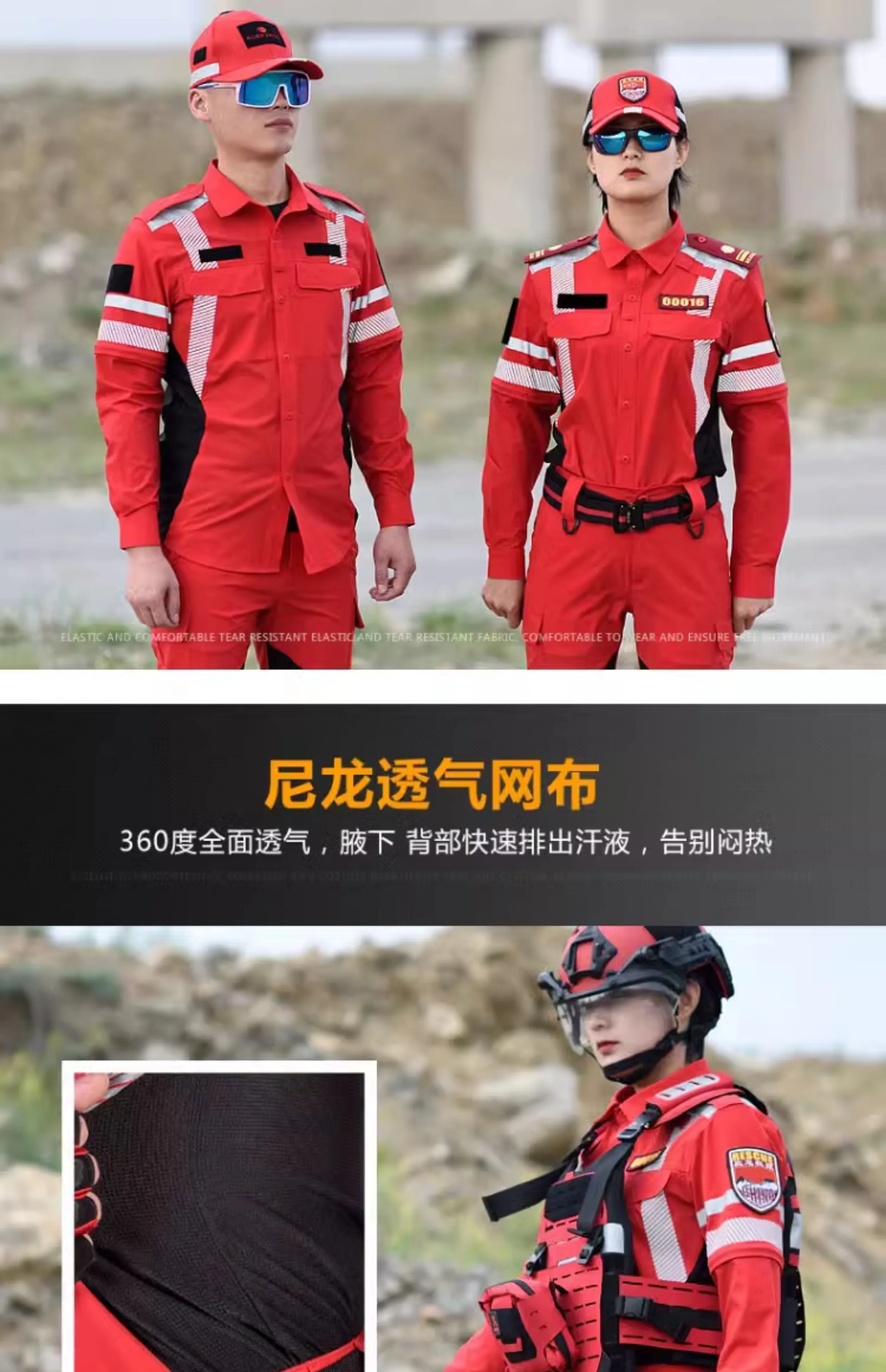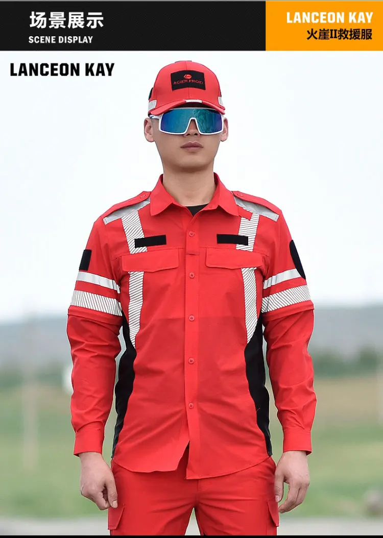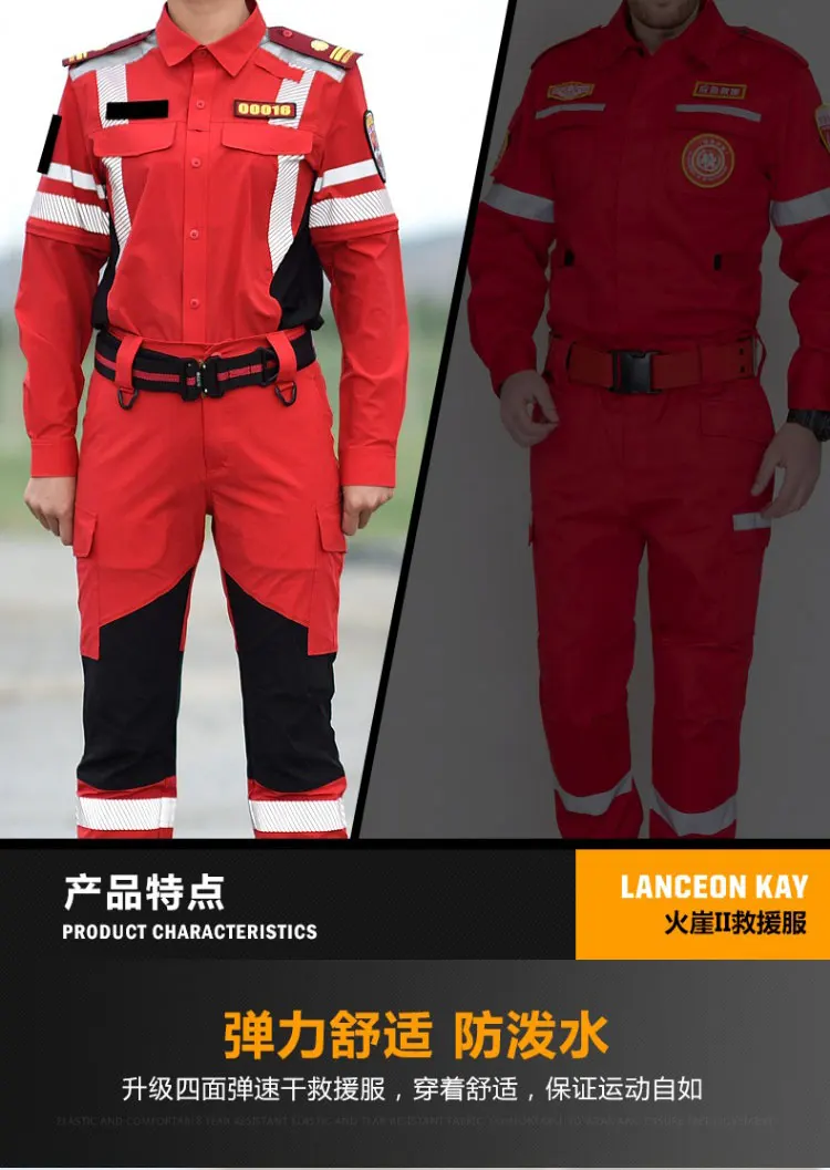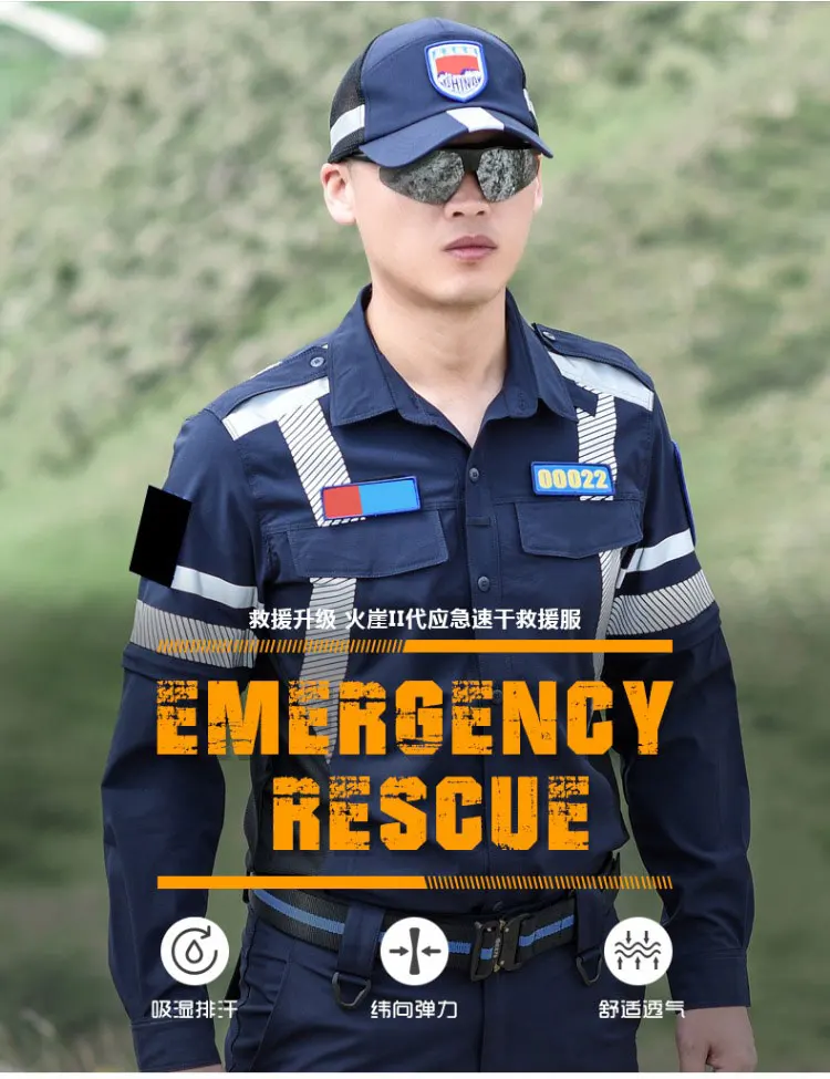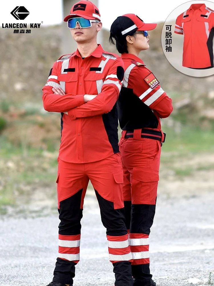 Ropa de trabajo de rescate de emergencia de secado rápido, conjunto de traje de rescate de carretera, uniforme de equipo de rescate de emergencia de verano