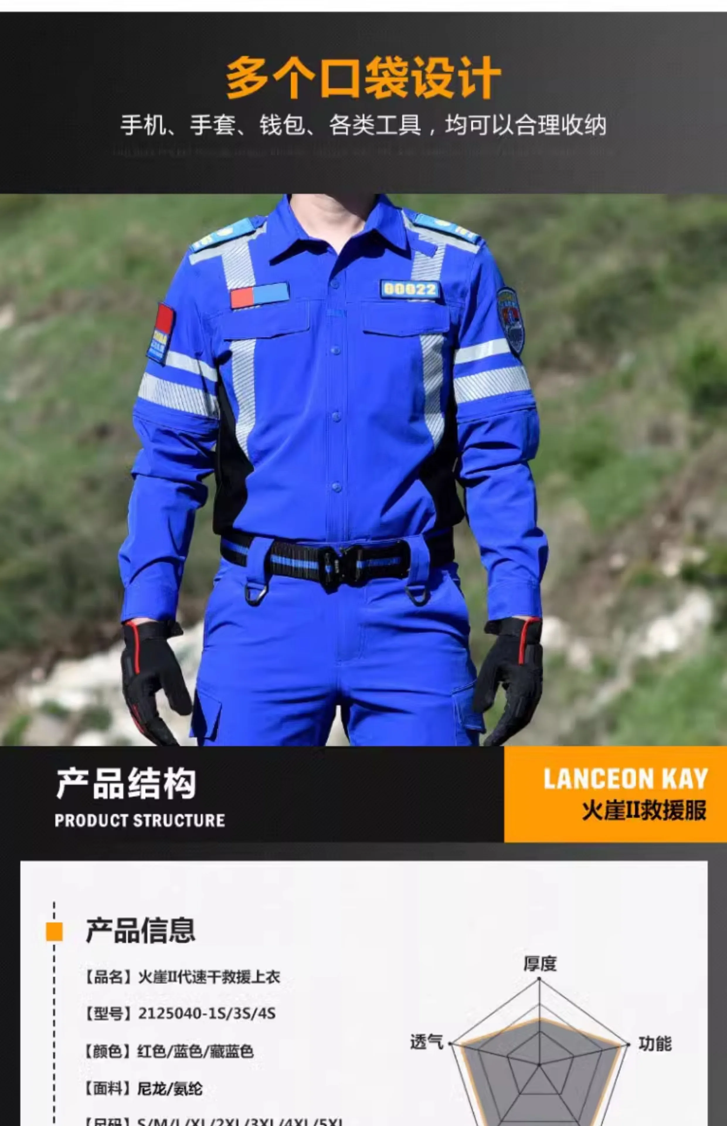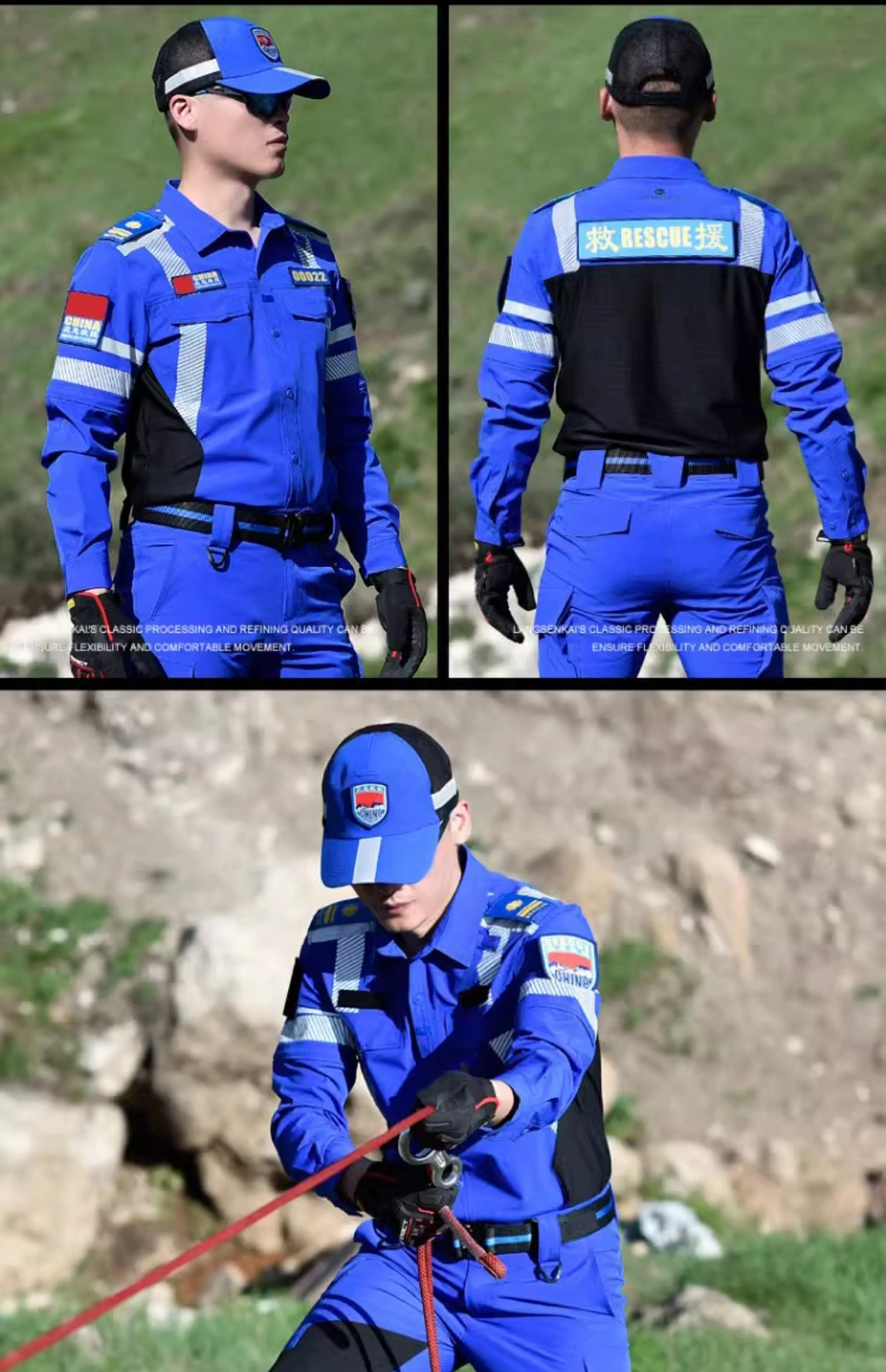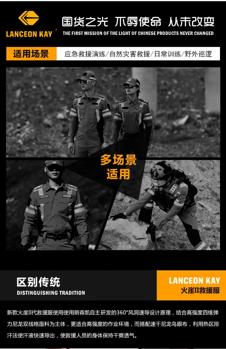 Ropa de trabajo de rescate de emergencia de secado rápido, conjunto de traje de rescate de carretera, uniforme de equipo de rescate de emergencia de verano