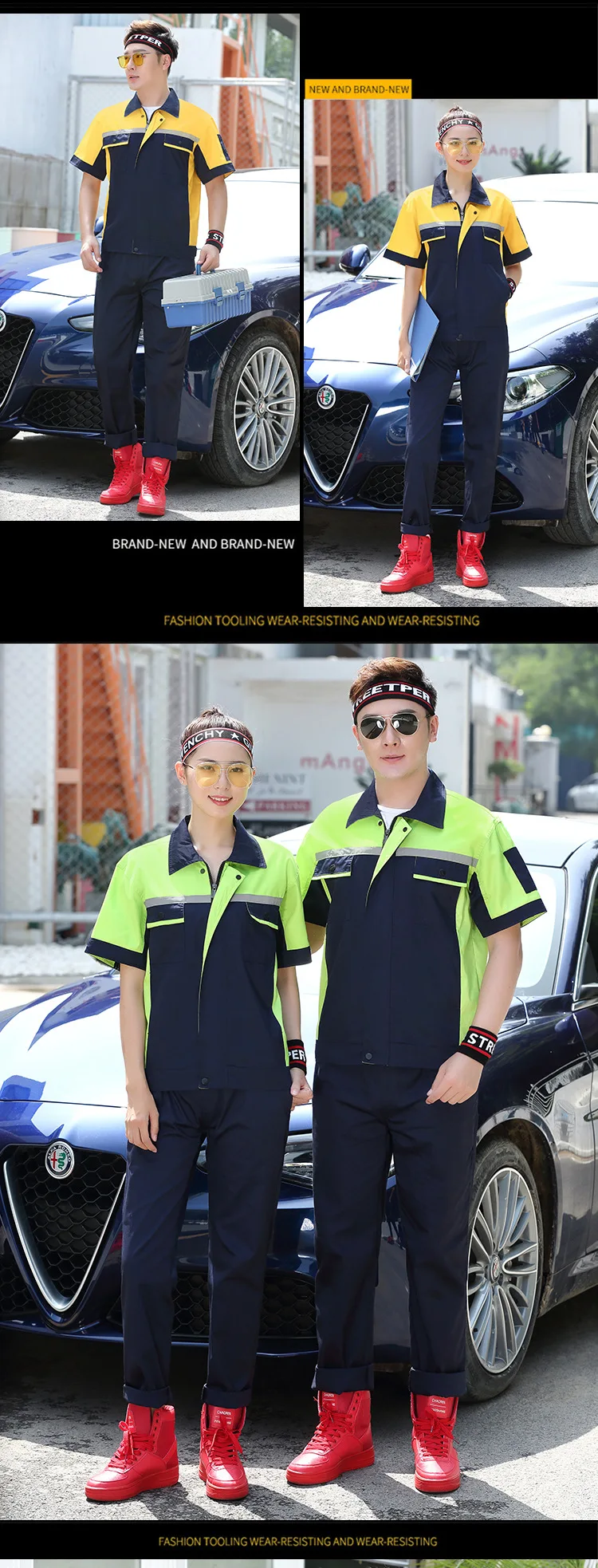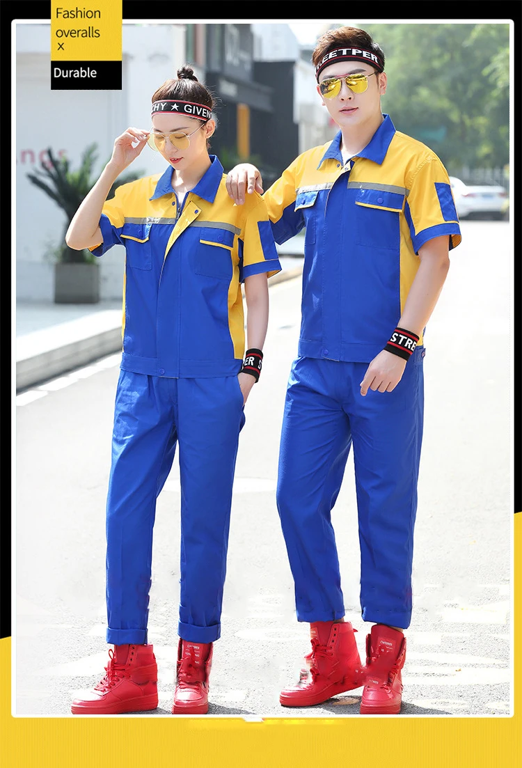 Ropa de trabajo de verano para hombres y mujeres, overoles de reparación de automóviles mecánicos de seguridad protectora, uniformes de limpieza de costuras transpirables, ropa de trabajo de verano 2021 para hombres y mujeres, overoles de reparación de automóviles mecánicos, uniformes de limpieza de costuras transpirables
