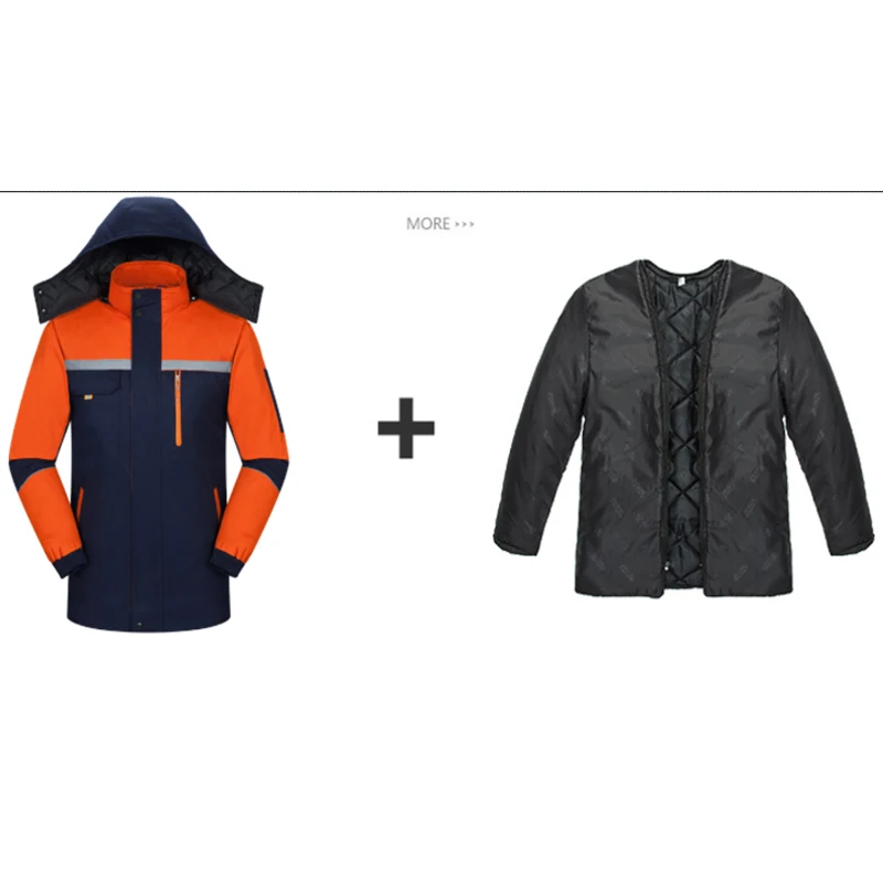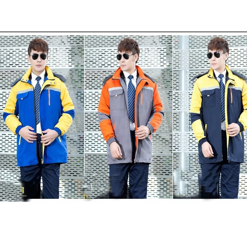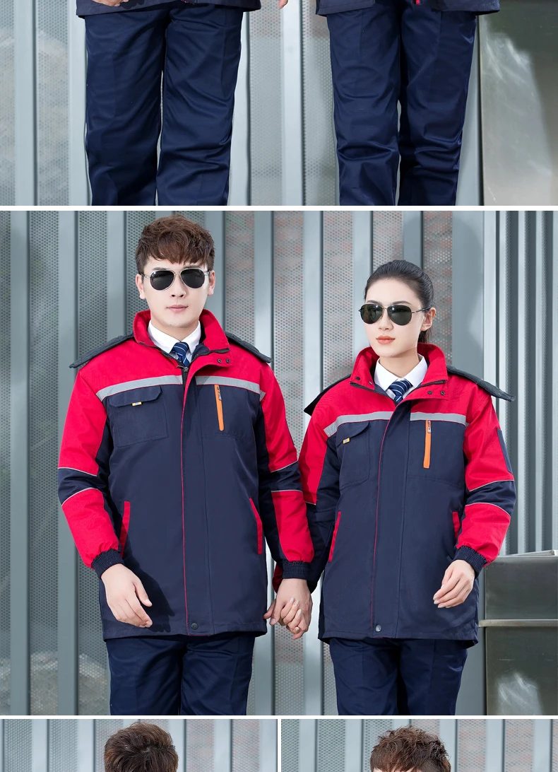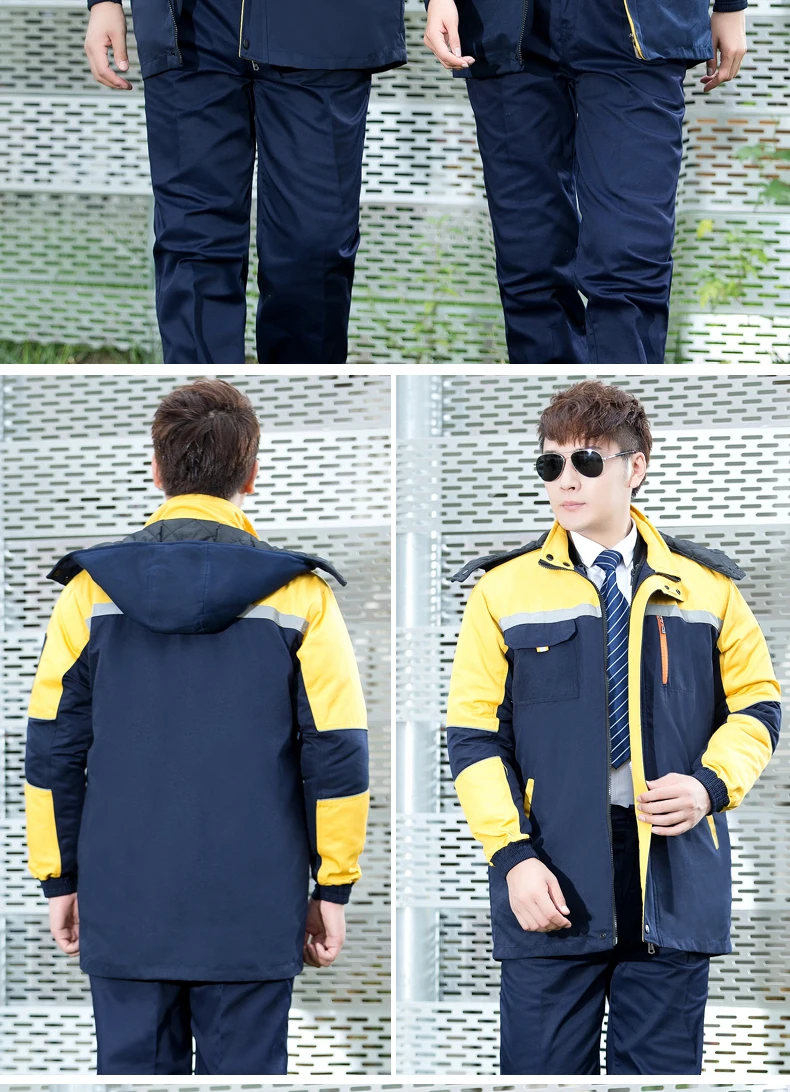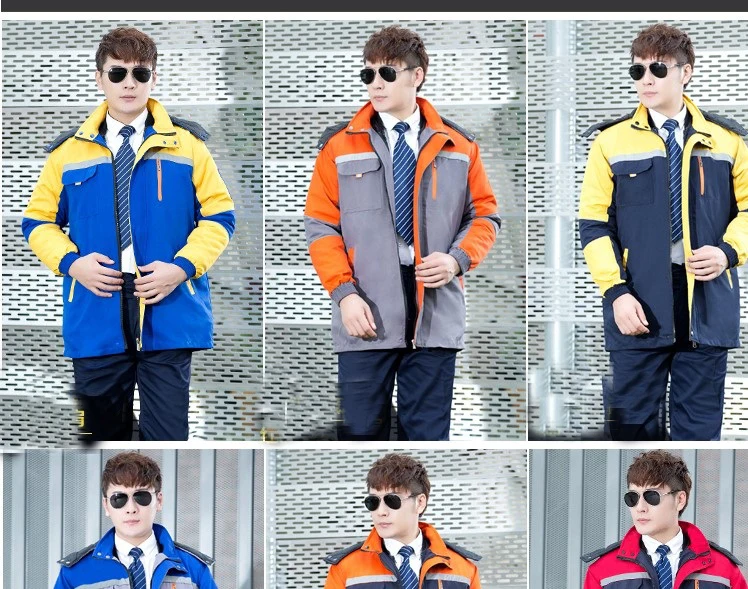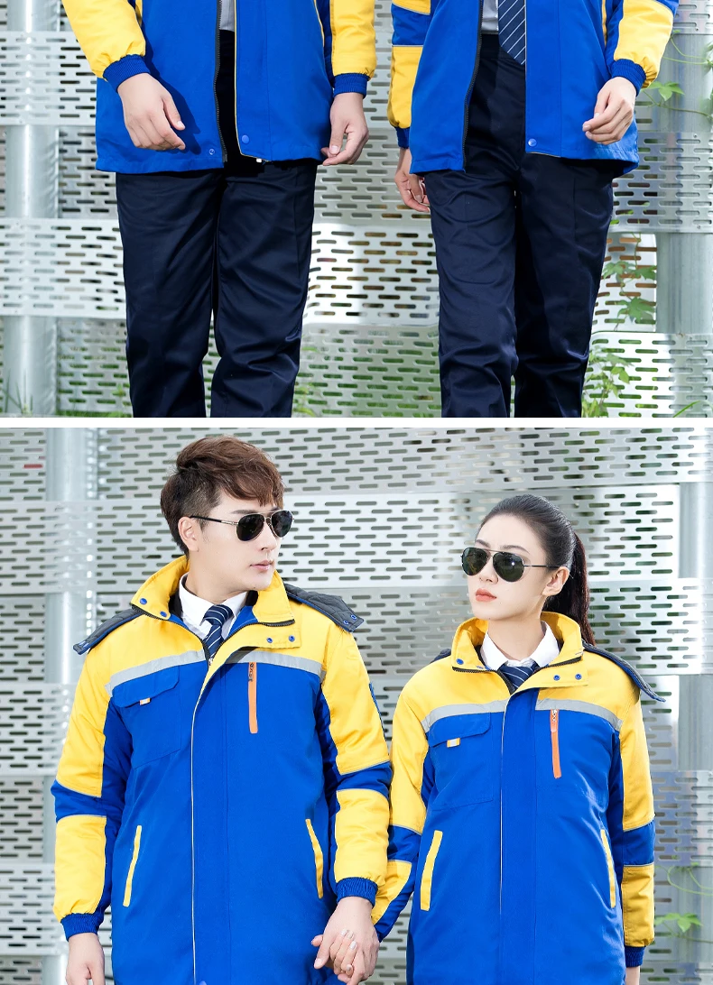 Mono de talla grande para hombre y mujer, ropa protectora gruesa, chaqueta, reparación de automóviles, herramientas personalizadas, ropa de invierno, chaqueta, abrigo vivoRopa de trabajo de talla grande para hombre y mujer, chaqueta gruesa cálida, abrigo para reparación de automóviles, taller mecánico, abrigo con capucha de color de contraste de invierno