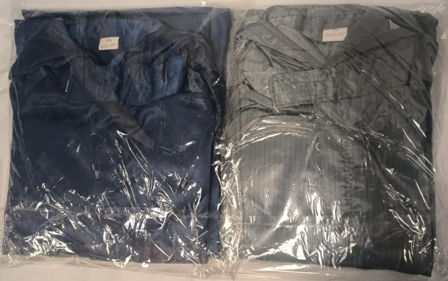 ★La seda conductora a rayas de poliéster, tejida con seda conductora, puede aislar eficazmente la electricidad estática generada por el cuerpo humano y tiene un rendimiento antiestático a largo plazo. La ropa sin polvo tiene un rendimiento antiestático y a prueba de polvo excelente y duradero, y puede liberar eficazmente la carga electrostática del cuerpo humano. La densidad de la tela de seda limpia es mayor que la de la tela de seda ordinaria para lograr que no se forme bolitas, no se desprenda de la fibra, no se pegue al polvo y tenga una buena estanqueidad.
