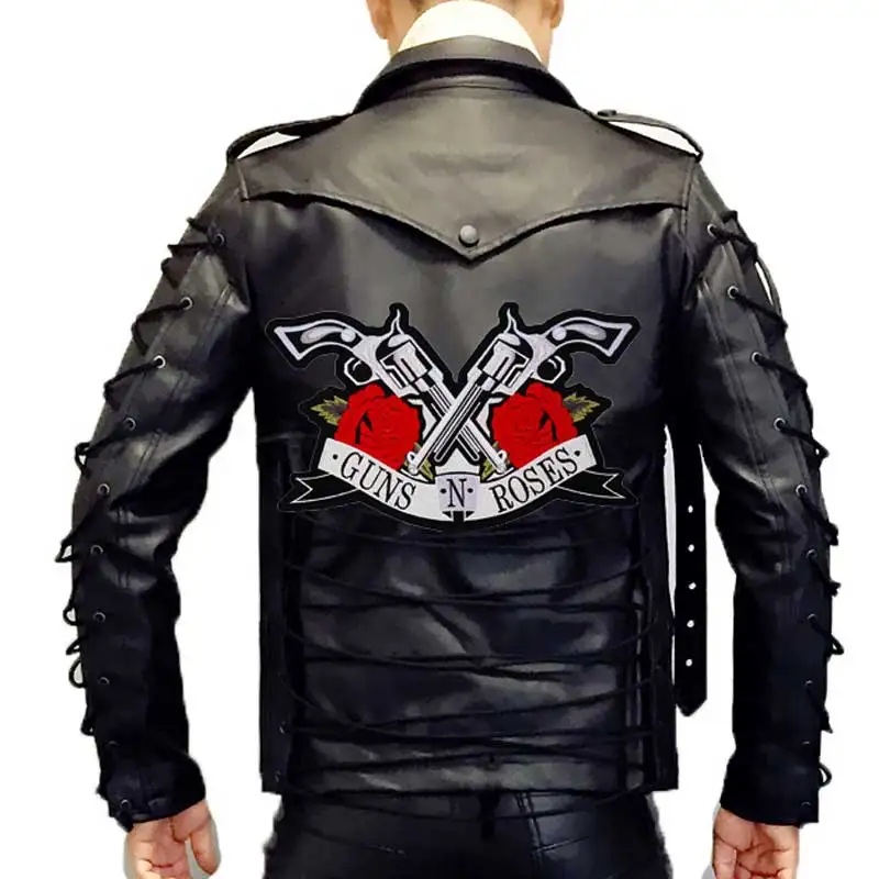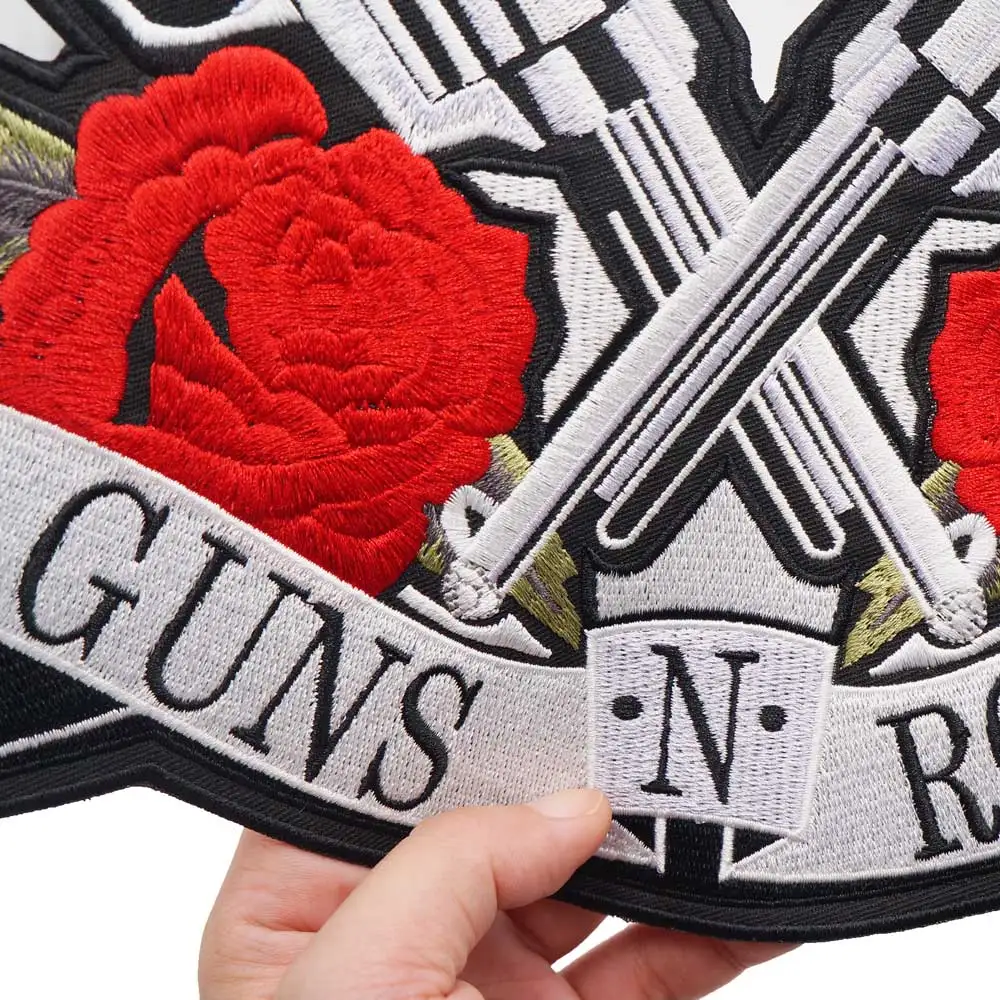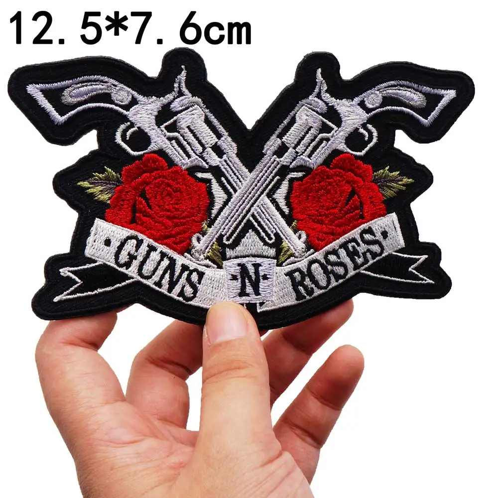 Roses and guns parches bordados grandes, apliques de costura y hierro, banda de motorista punk Hip Hop, ropa de Rock, artículo esencial
