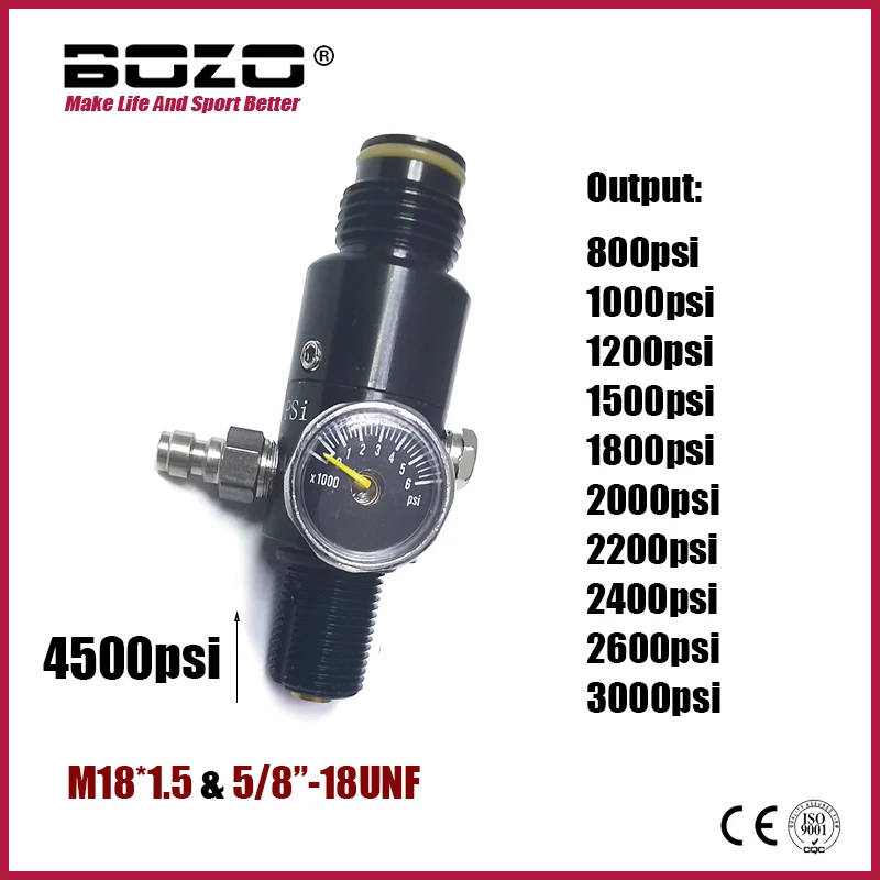 Marcador aire comprimido Co2 cilindro botella tanque válvula reguladora 4500psi entrada 800psi a 3000psi salida