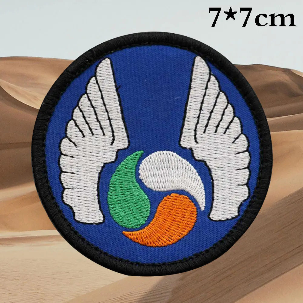 Roundel del Cuerpo Aéreo irlandés, parches bordados tácticos para mochilas y ropa, accesorios militares con gancho trasero