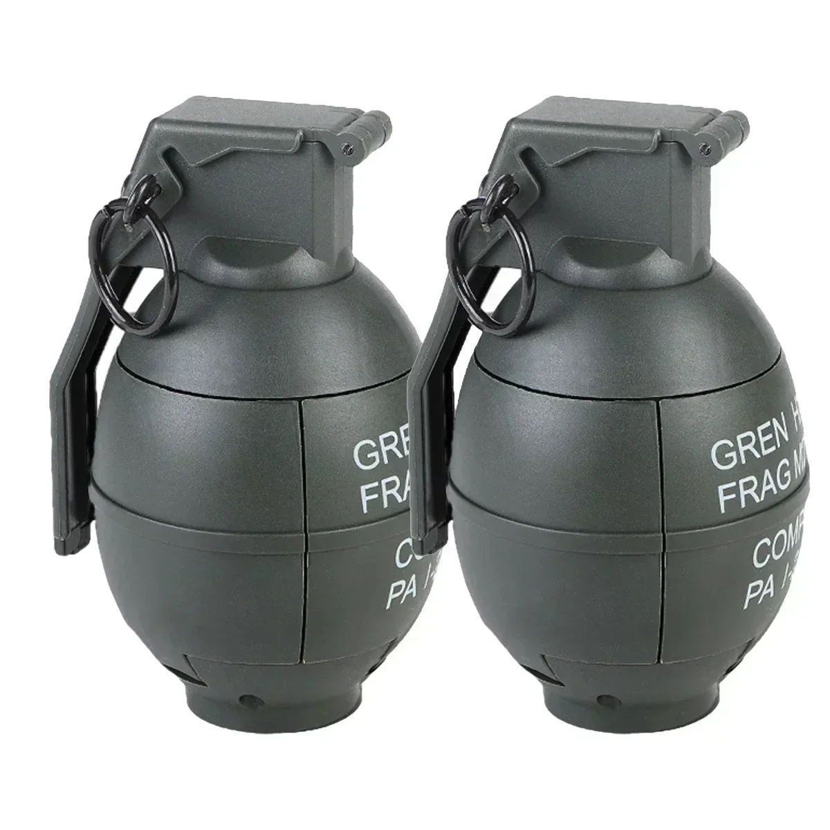 RR2PCS Grenadas de impacto alimentadas por resorte, plástico táctico M67, juguetes de granadas de mano, modelo para Airsoft, Paintball, juego CS, accesorio de juego de rol