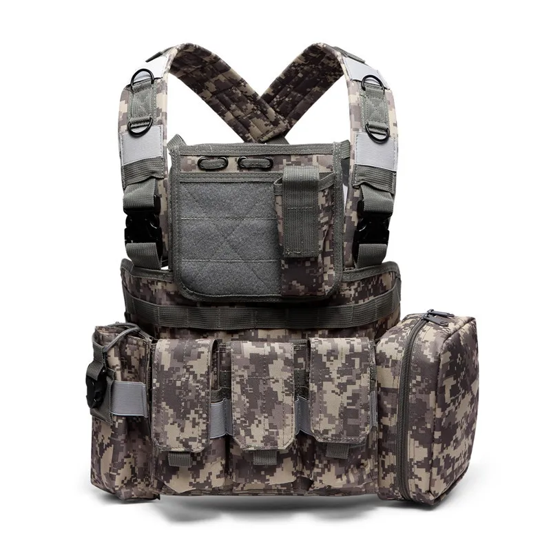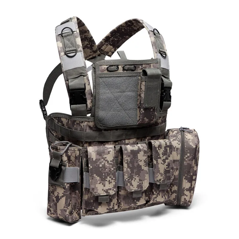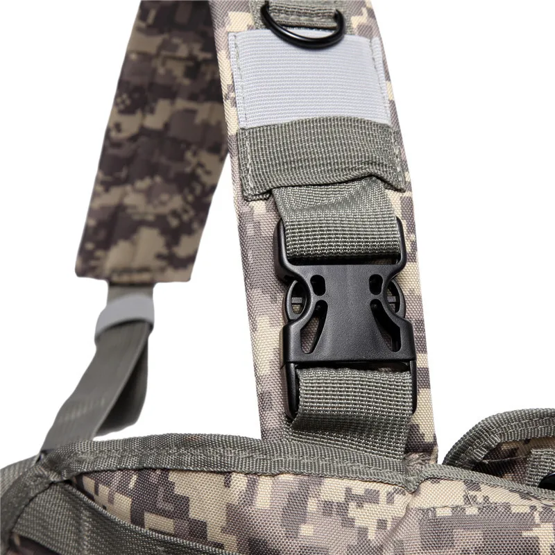 -Fabricado con nylon 600D duradero -Tratamiento repelente al agua superficial de revestimiento impermeable de PU -Diseño de combinación modular para un desmontaje rápido -Se puede ajustar según el cuerpo del usuario -Puede usar todos los accesorios del sistema táctico MOLLE