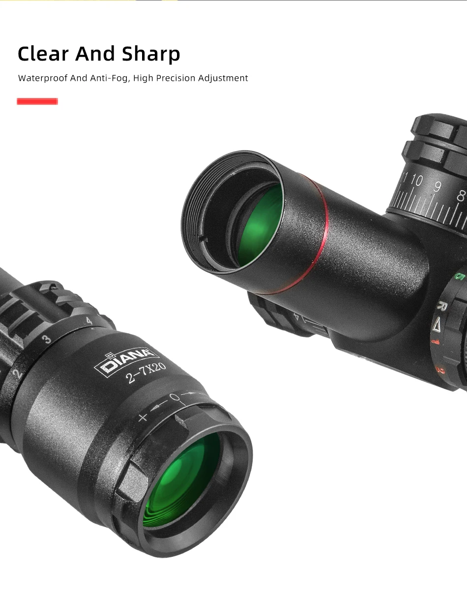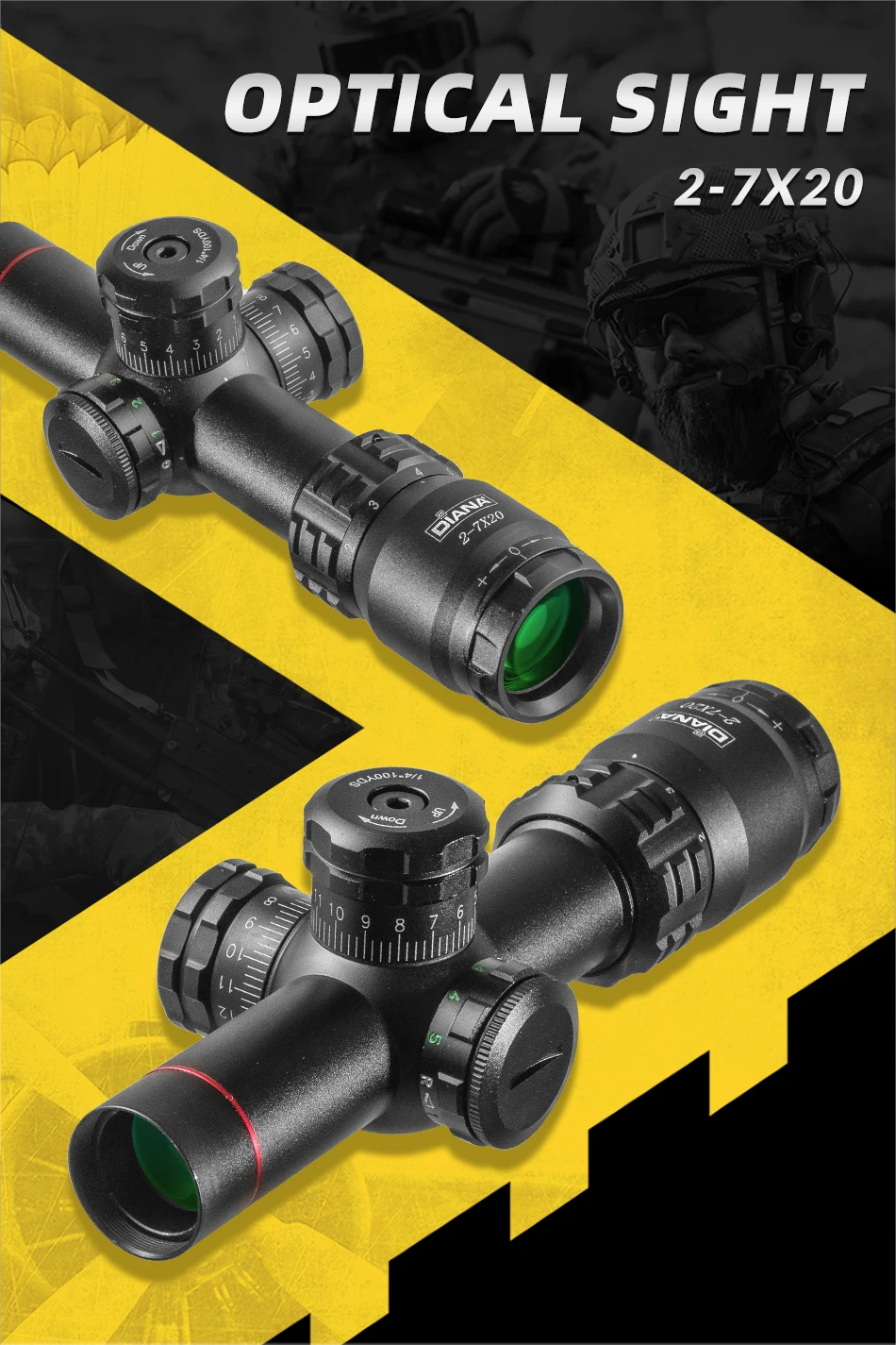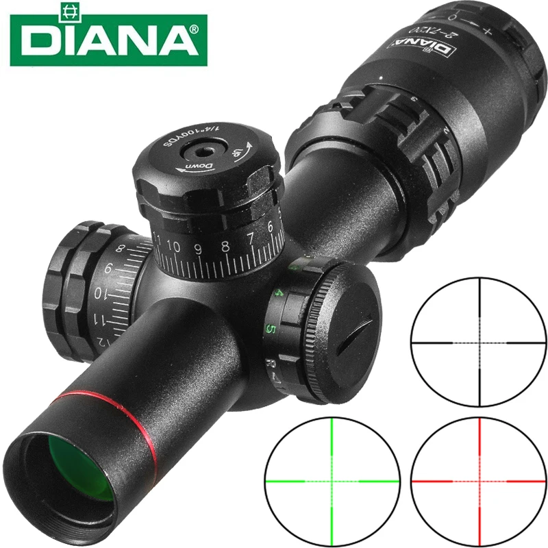RU DIANA-mira telescópica óptica para Rifle de caza, equipo de francotirador con punto rojo y verde, 2-7X20