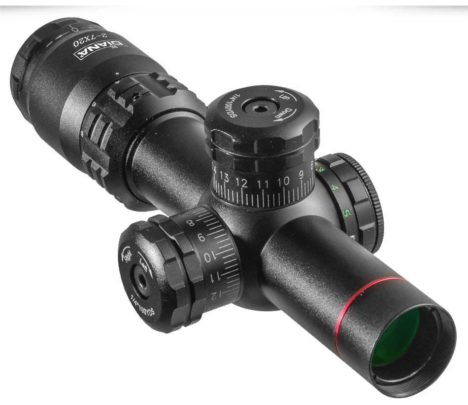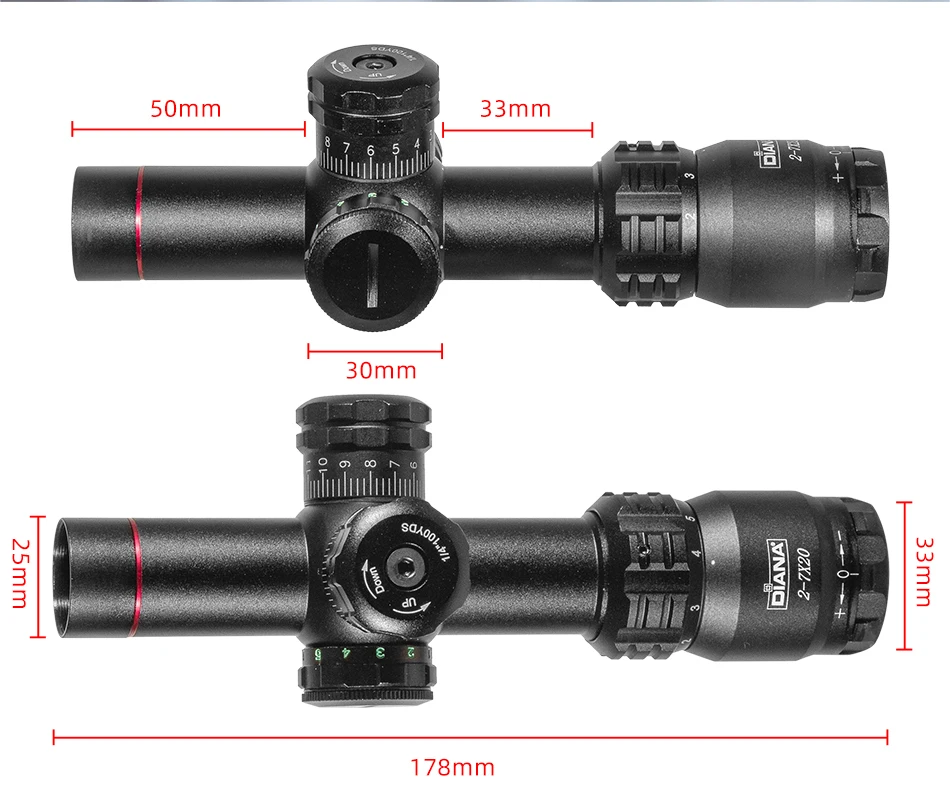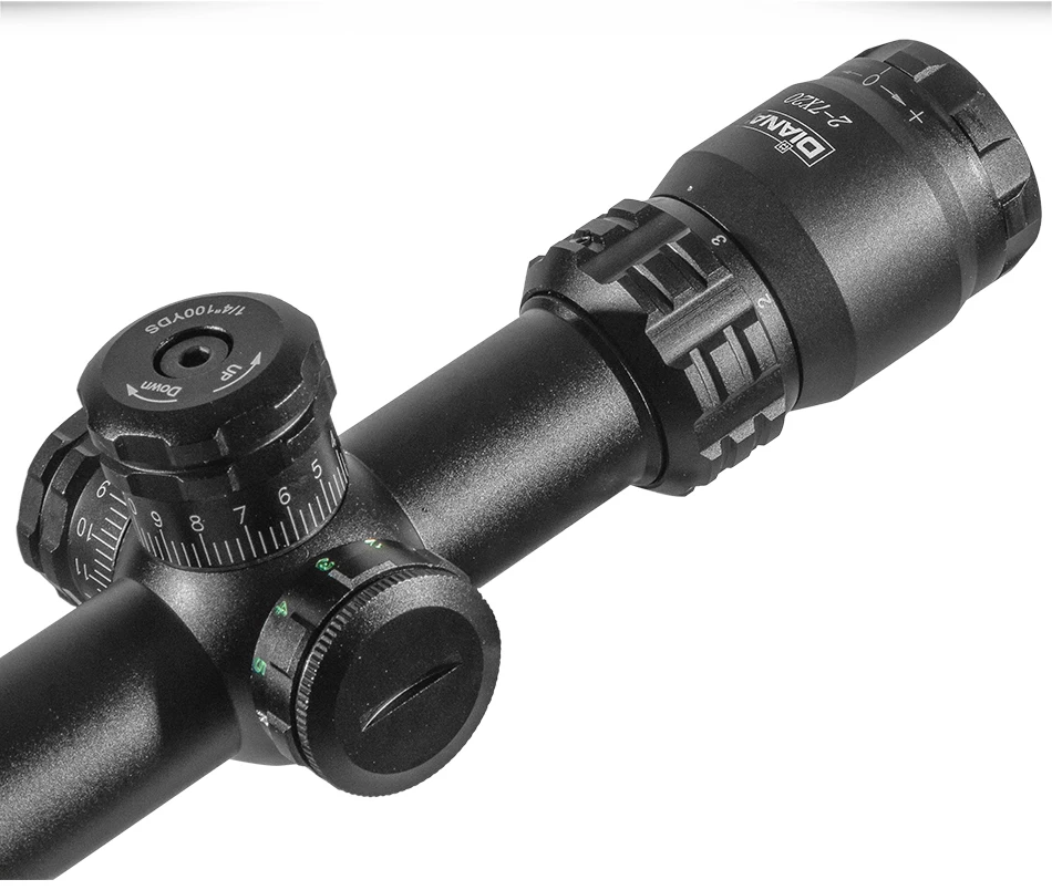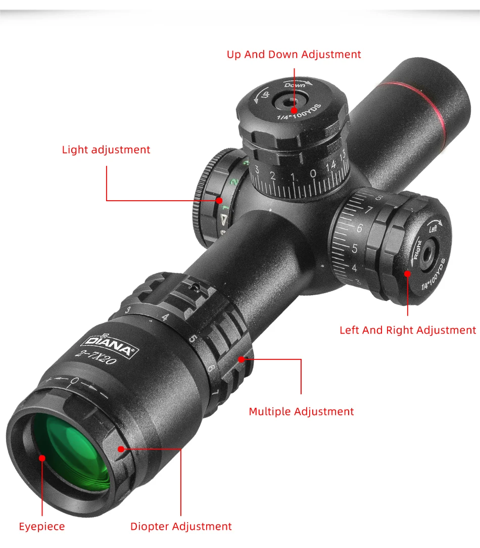 RU DIANA-mira telescópica óptica para Rifle de caza, equipo de francotirador con punto rojo y verde, 2-7X20