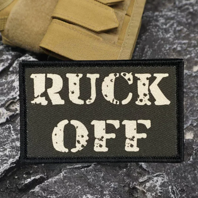 ¡RUCCA APAGADO!Parche de impresión, parches tácticos de gancho y bucle para ropa, brazalete, sombreros militares, insignia de moral, mochila, chaleco, pegatinasCaracterísticas: