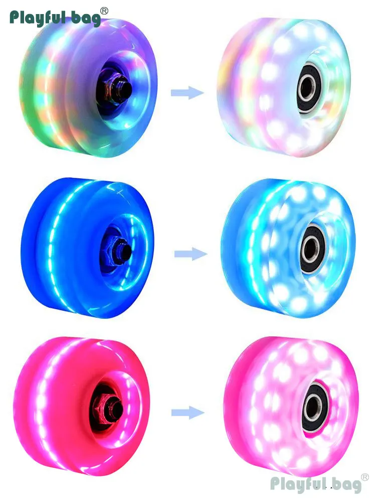 Nombre del producto: rueda flashDureza: 82AMaterial: PUAdecuado para: patines de doble fila, patinetas.Hebilla interior: material PPRodamiento: Alta velocidad 608RSNúcleo: luz LEDRebote: 80%Tamaño: 58 mm * 32 mm